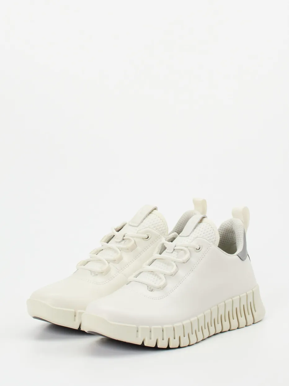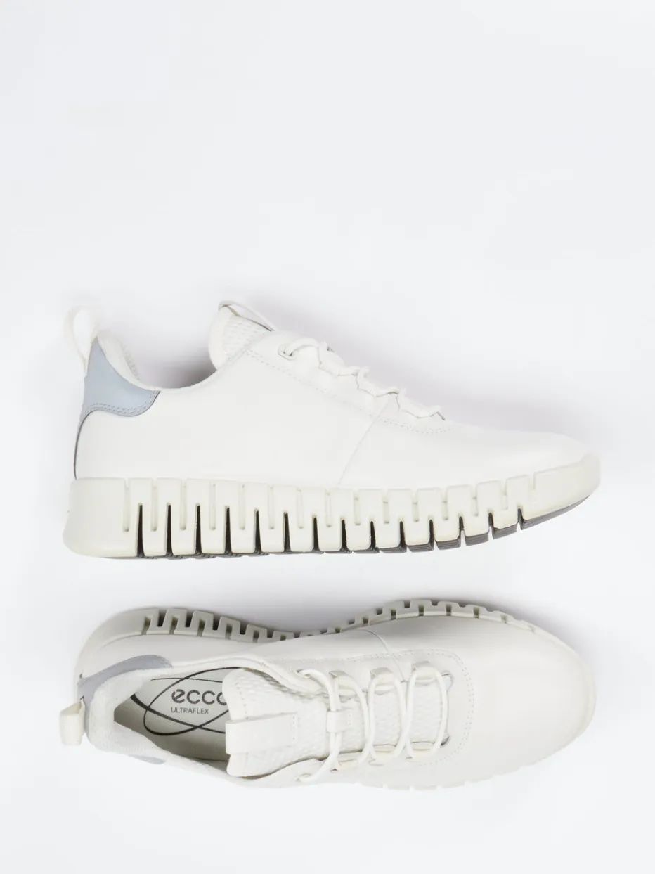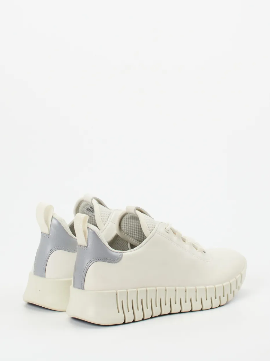Leichtigkeit trifft auf urbanen Stil.Ecco präsentiert mit diesem Sneaker ein ausgewogenes Modell für Damen. Ideal für aktive Tage, überzeugt der Sneaker mit weichem Kalbleder und einem atmungsaktiven Hightech-Mesh-Futter. Die matte Offwhite-Farbe mit hellgrauer Fersenkappe und klassisch-runder Silhouette unterstreicht den minimalistischen Look. Eine flexible Gummisohle und die gepolsterte Zunge erhöhen den Tragekomfort, während die Zuglasche und Ton-in-Ton-Schnürung dezente Akzente setzen. Im Stil von „Quiet Performance“ ist dieses Modell perfekt für sportlich-inspirierte Freizeitoutfits. Ein moderner Komfort-Allrounder im reduzierten Straßenstil von Ecco.