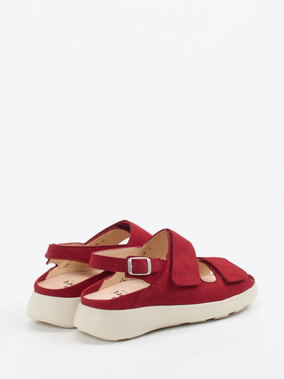 Wohlfühlkomfort für jeden Sommertag.Finn Comfort präsentiert eine Damen-Komfortsandale für entspannte Freizeitlooks und gesunde Mobilität. Für längere Wege oder gemütliche Stunden im Garten bietet das Modell mit weichem, samtig angeschliffenem Nubukleder und ledergefüttertem Innenbereich höchste Bequemlichkeit. Die offene, anatomisch geformte Silhouette in elegantem Dunkelrot überzeugt mit verstellbarem Klettverschluss, zusätzlicher Schnalle und ergonomischem Fußbett. Die flexible Gummisohle trägt rutschhemmend zur Trittsicherheit bei. Dezente Ton-in-Ton-Nähte und eine zurückhaltende Logoprägung wirken klassisch. Ideal kombinierbar mit Leinenhosen oder luftigen Sommerkleidern. Komfort-Innovation von Finn Comfort für anspruchsvolle Trägerinnen.