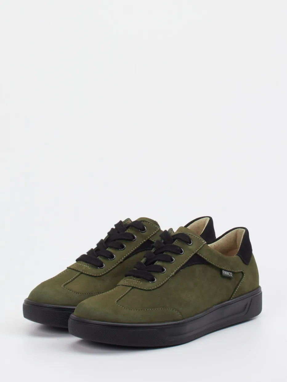 Damen Finn Comfort – Schnürschuh aus Nubukleder oliv