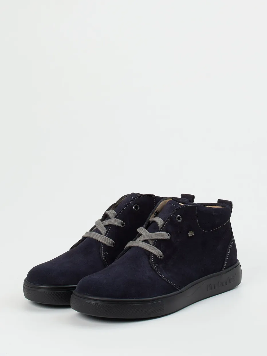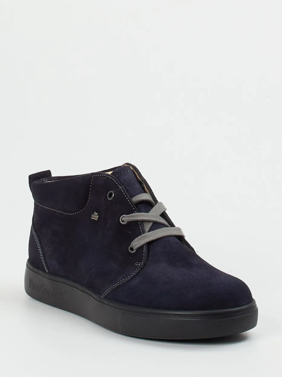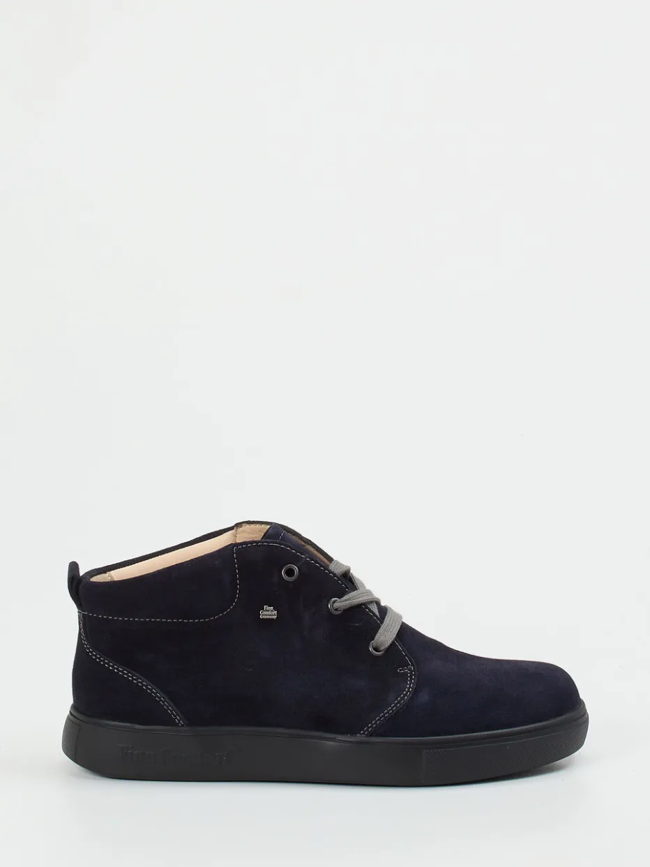 Die Marke Finn Comfort präsentiert diesen hochwertigen Schnürschuh als Mid-Cut-Sneaker für Alltag und Freizeit.