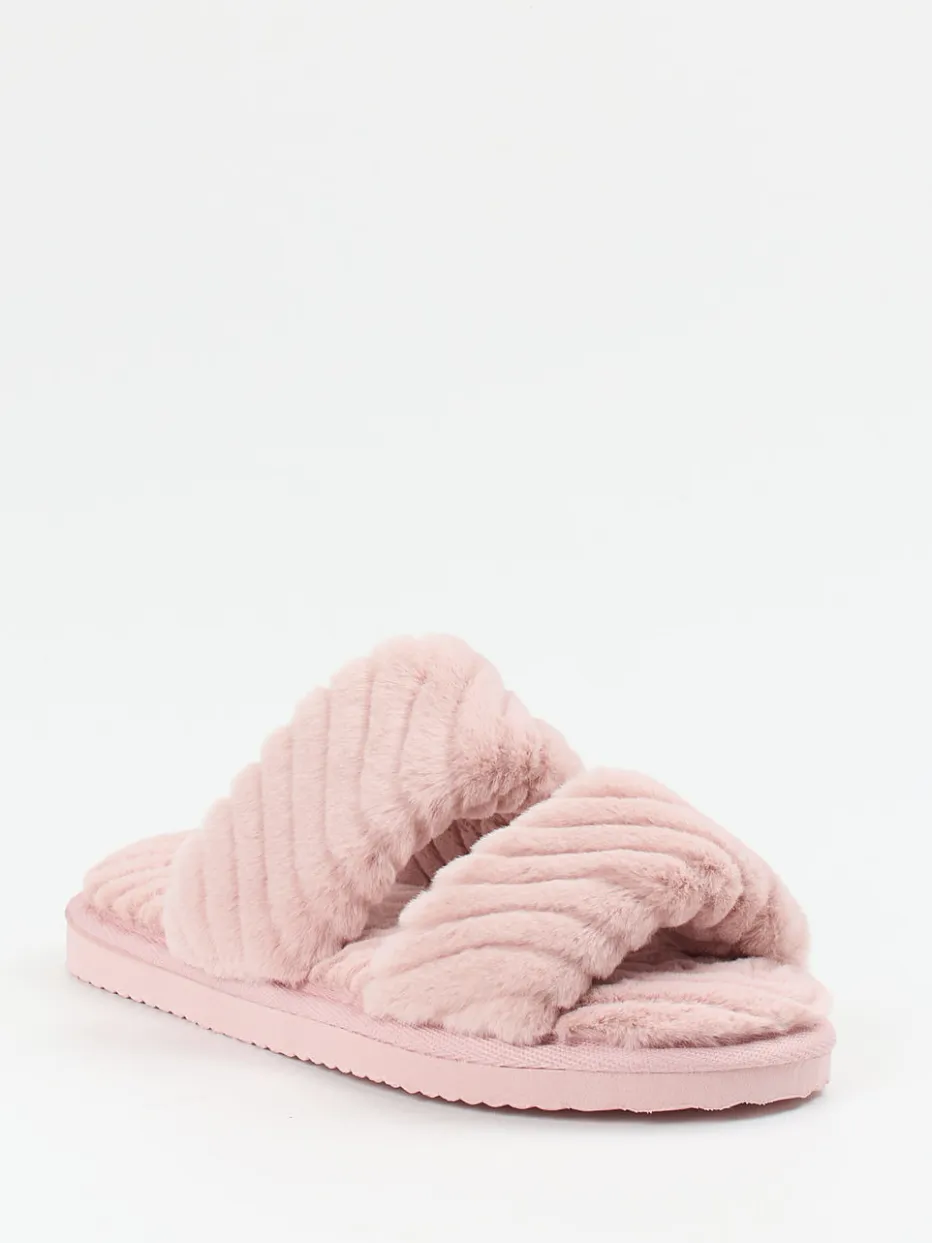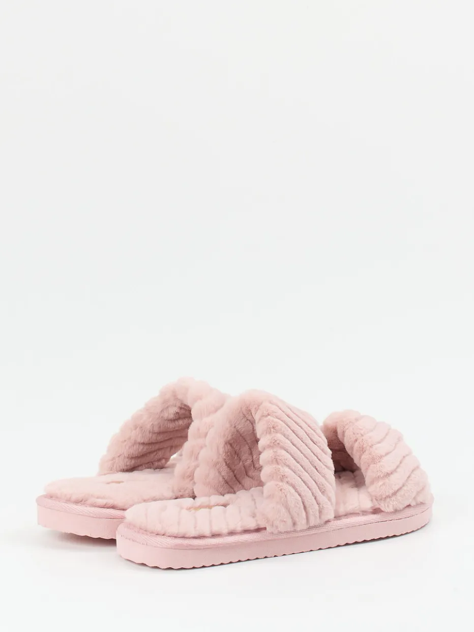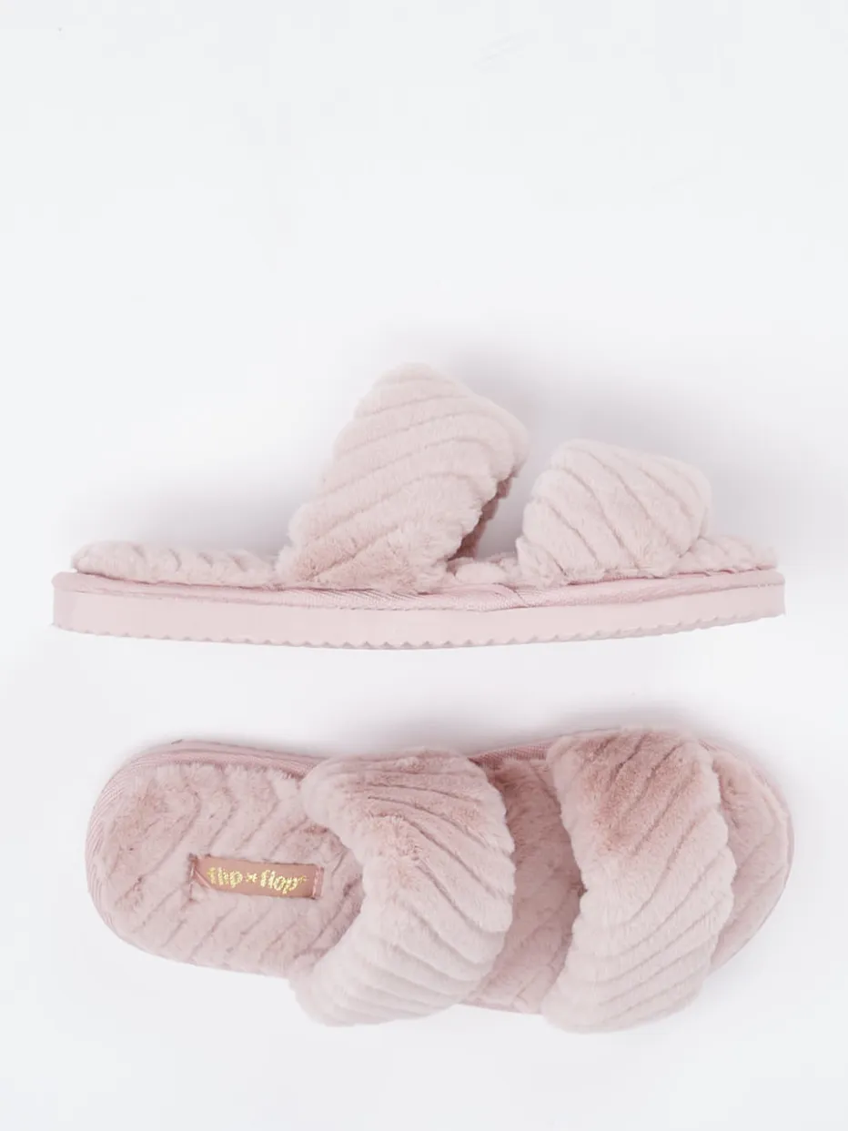 Flauschiger Komfort trifft Casual-Trend.Die Marke Flip Flop begeistert mit einer Damen-Pantolette, die sanften Komfort stilvoll interpretiert. Ideal für gemütliche Stunden zu Hause sorgt das flauschige Textil mit Kunstfellstruktur für ein softes Trageerlebnis. Das Altrosa in Uni-Färbung greift aktuelle Pastelltrends auf, während die zwei breiten Riemen festen Halt geben. Die flache Silhouette mit profilierter Gummisohle unterstreicht den Loungewear-Charakter und bietet Rutschfestigkeit auf glatten Böden. Ein Rippenfinish im Obermaterial verleiht dezente Struktur und visuelle Tiefe. Perfekt kombinierbar mit Bademantel oder Homewear-Set. Flip-Flop-Komfort mit modischem Twist für entspannte Wohlfühlmomente.