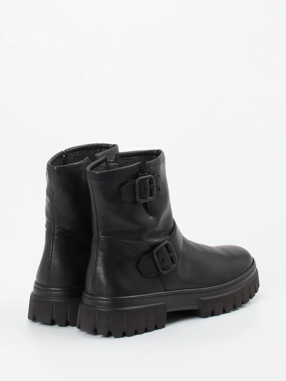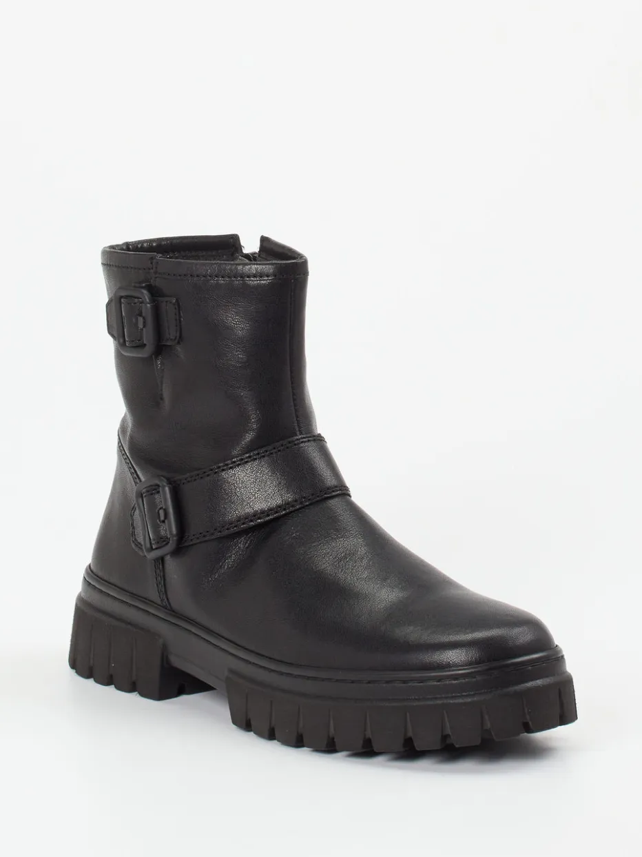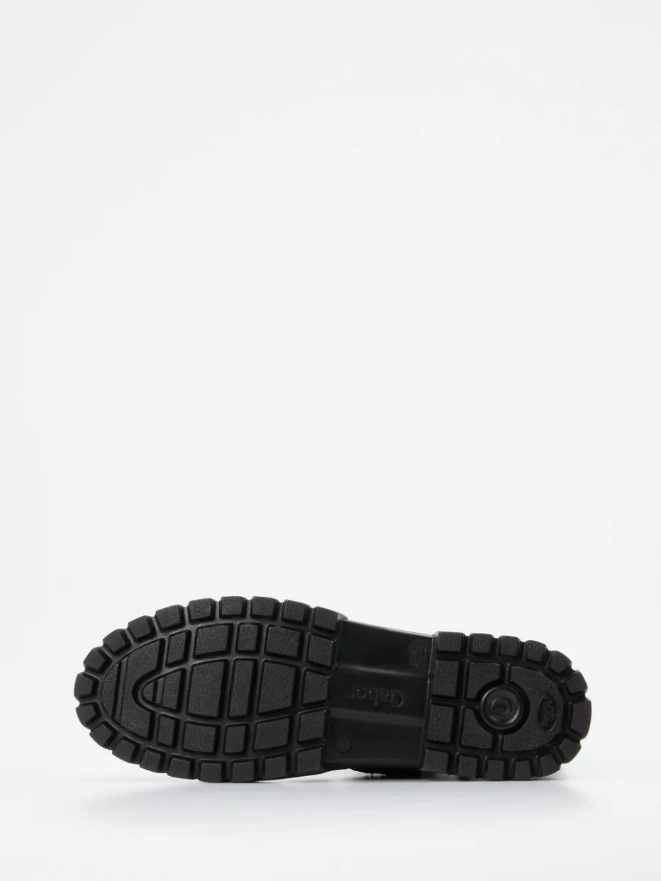 Robuste Gabor-Stiefelette mit Utility-Charme: weiches Kalbleder trifft auf griffige Profilsohle und dekorative Schnallen. Funktionalität und Stil für urbane Herbsttage.