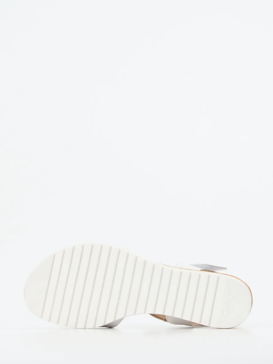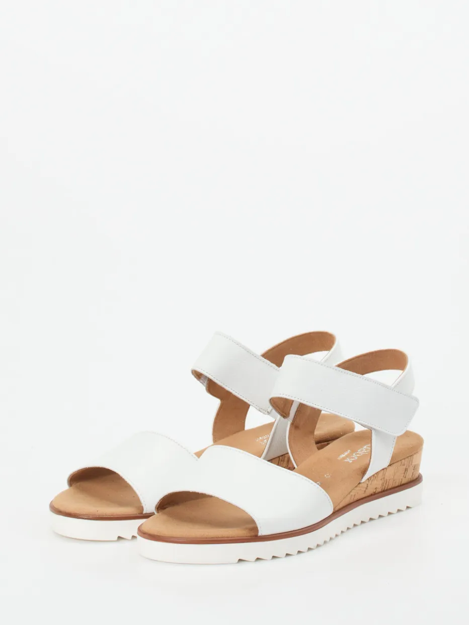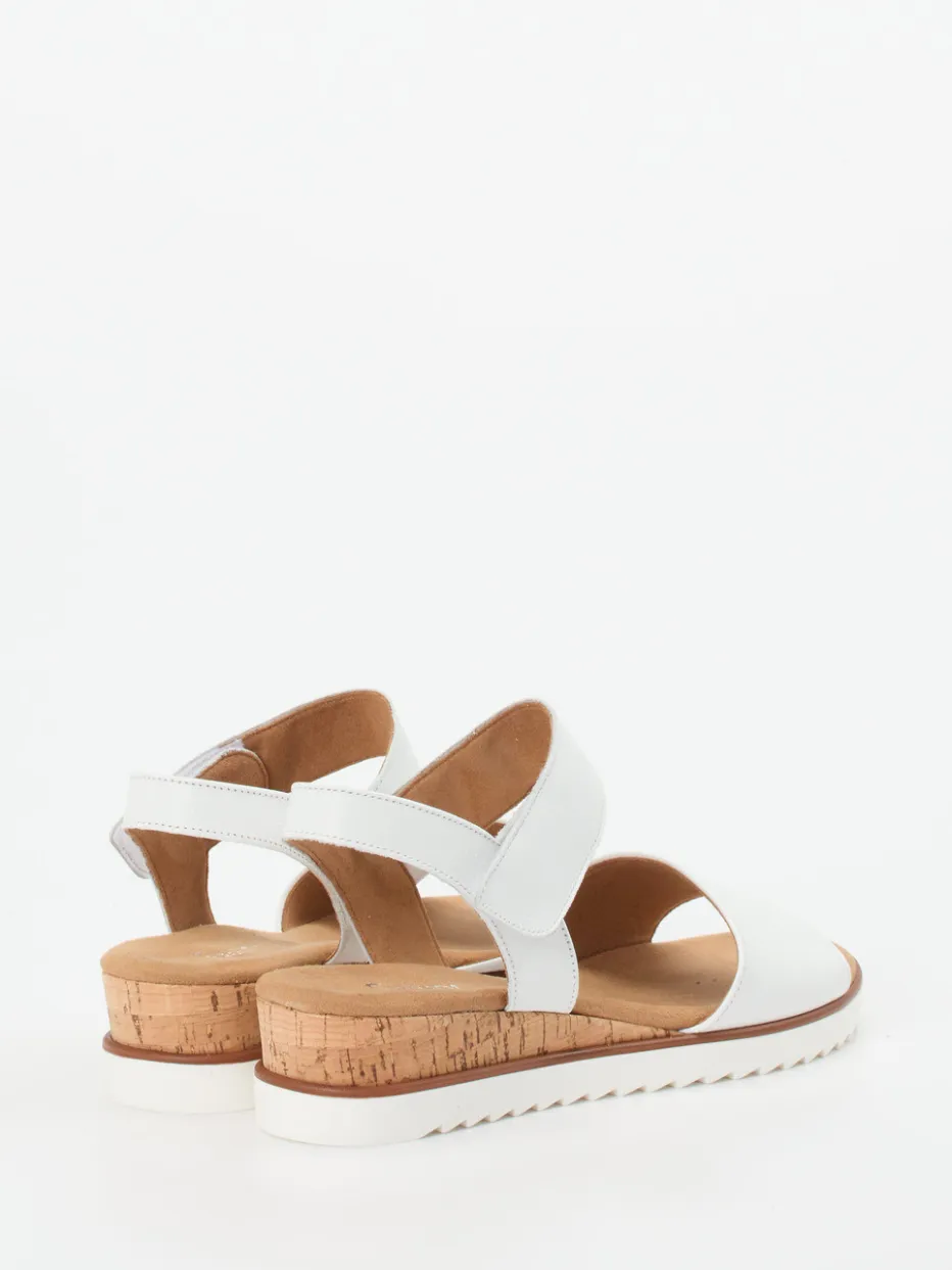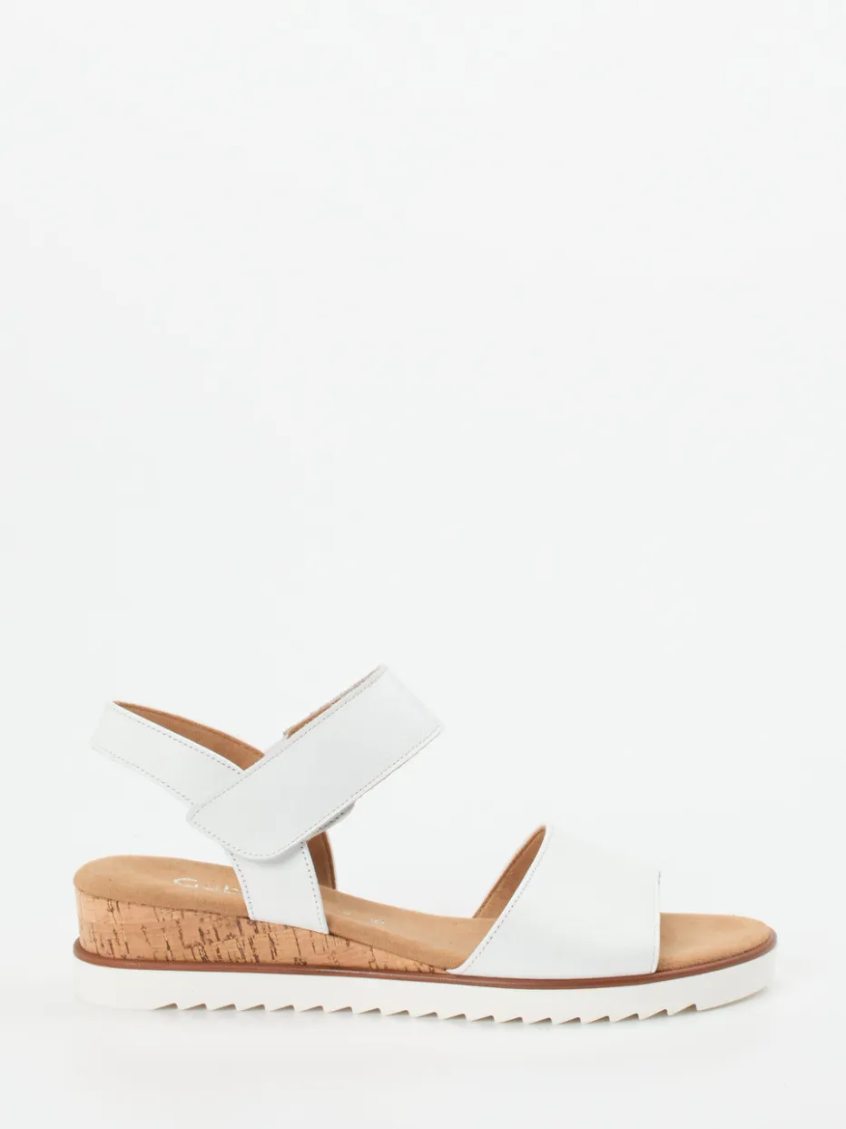 Sommerkomfort für jeden Tag.Gabor Comfort steht bei dieser Keilsandalette für passgenauen Halt und angenehmen Tragekomfort. Für ausgedehnte Spaziergänge oder entspannte Urlaubstage: Das natürlich genarbte Kalbleder in strahlendem Weiß liegt matt in der Optik und weich am Fuß. Die Kombination aus Klettverschluss und seitlichem Elasteinsatz sorgt für eine flexible Passform. Der Keilabsatz in Korkoptik verleiht Höhe mit Leichtigkeit, während die profilierte Gummisohle sicheren Grip bietet. Dezente Nähte und ein cleanes Design betonen den lässig-minimalistischen Look. Ein bequemes Lieblingsstück mit funktionalem Design und sommerlicher Ausstrahlung.