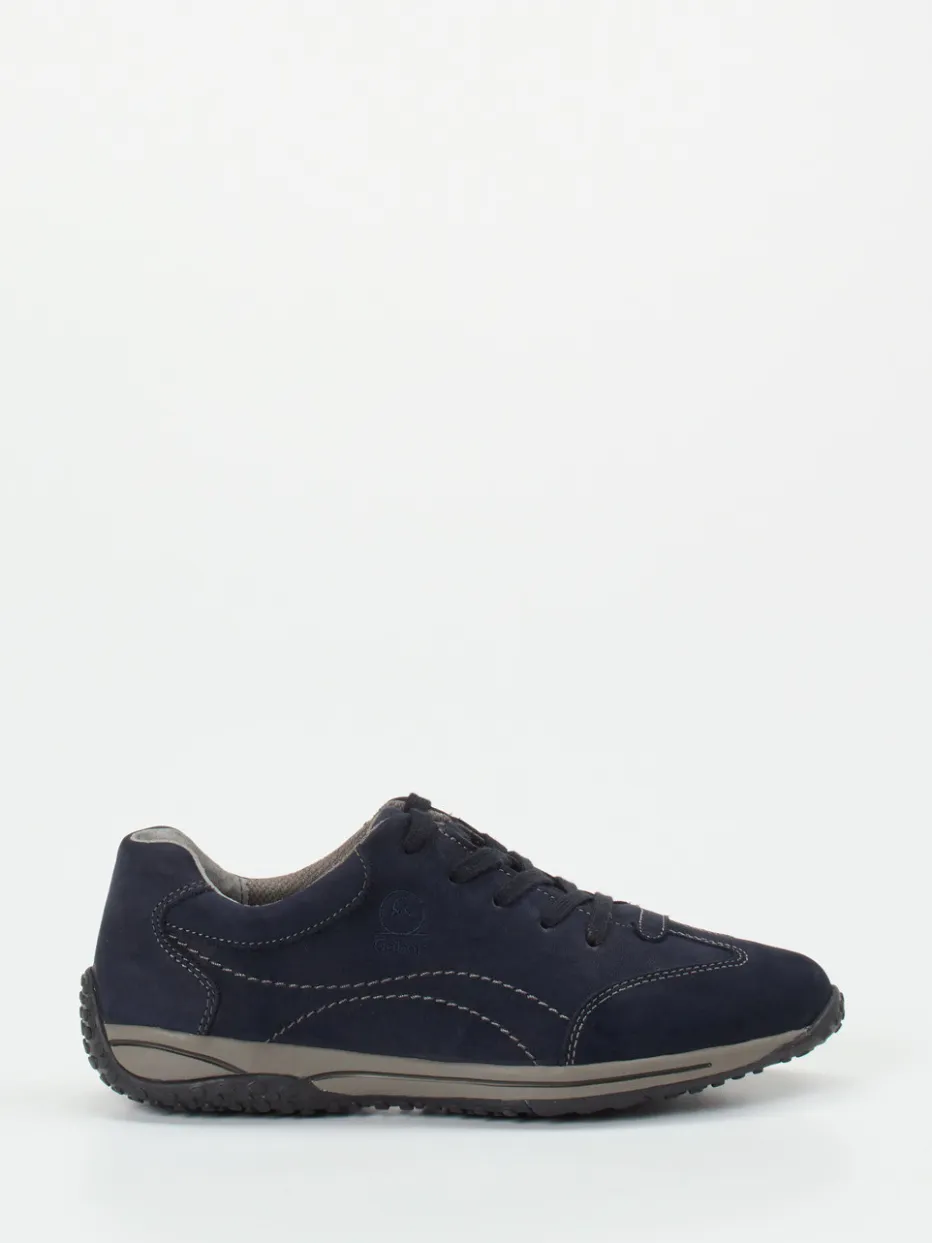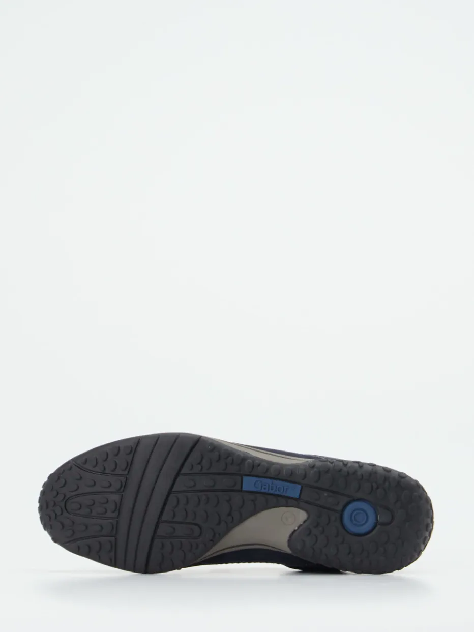 Komfort trifft dezente Sportlichkeit.Gabor Comfort liefert mit diesem Damen-Sneaker ein modisch-zurückhaltendes Modell für Alltag und Freizeit. Das samtig angeschliffene Nubukleder in Dunkelblau ist hochwertig verarbeitet und wird von hellgrauen Kontrastnähten strukturiert. Die klassische, flache Silhouette sowie die profilierte Gummisohle mit Shock-Absorber sorgen für angenehme Stabilität und Tragekomfort. Eine gepolsterte Ferse und ein austauschbares Fußbett machen den Schuh besonders einlagentauglich. Inspiriert von Minimalismus und Quiet-Comfort-Trends lässt sich der Sneaker vielseitig zur Jeans oder Funktionsjacke kombinieren. Zuverlässige Bequemlichkeit im stilvoll-sportlichen Gewand – typisch Gabor Comfort.