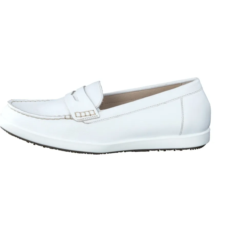 Schlichte Eleganz trifft Hochwertigkeit.Gabor Comfort präsentiert mit diesem Damen-Loafer ein stilvolles Modell für Alltag und Büro. Das fein genarbte Hirschleder in frischem Weiß verleiht dem Slipper eine angenehm weiche Haptik und sommerliche Leichtigkeit. Die klassische Form mit Penny-Riegel, Ton-in-Ton-Nähten und profilierter, honigfarbener Gummisohle verbindet zeitlose Eleganz mit funktionalem Design. Seitliche Gummizüge und die herausnehmbare, weich gepolsterte Decksohle sorgen für optimalen Komfort. Minimalistische Details treffen hier auf Trend-Ästhetiken wie Quiet Luxury und Soft Neutrals. Ein bequemer Loafer mit souveränem Stil und dem bewährten Tragekomfort von Gabor Comfort.