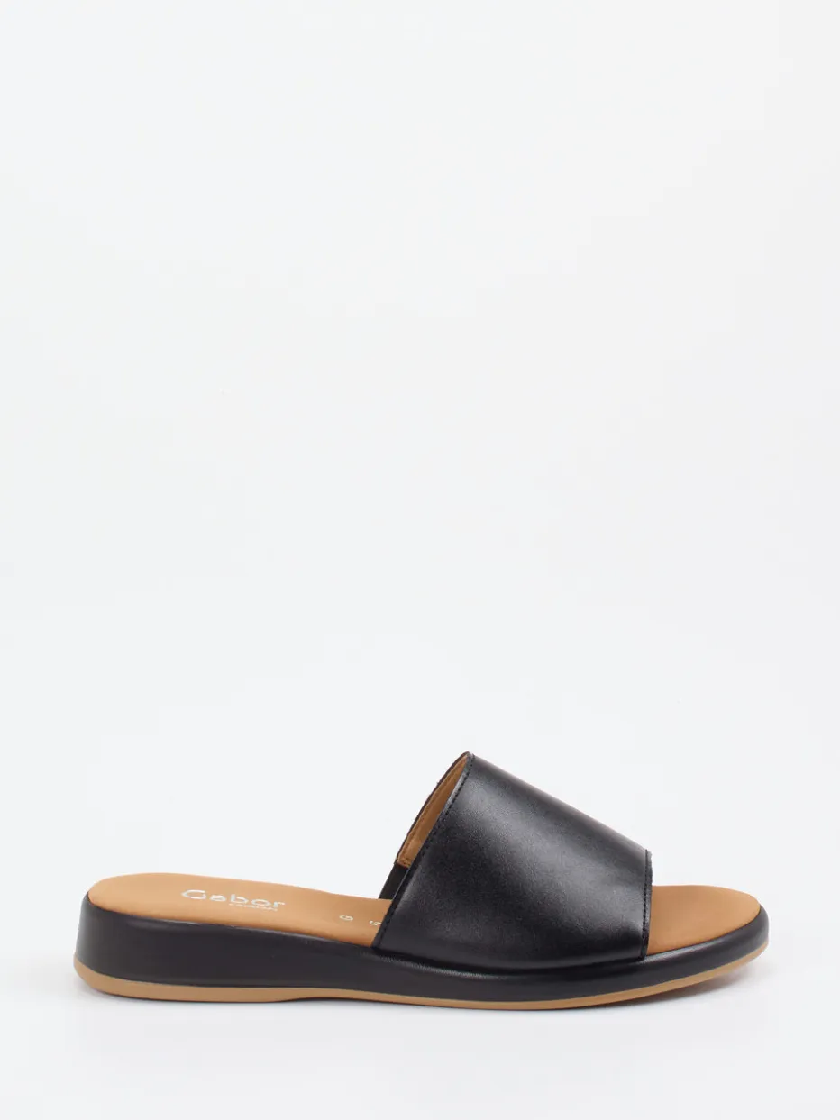 Reduktion im besten Stil.Gabor Comfort zeigt mit dieser Pantolette für Damen, wie elegant minimalistische Sommerlooks sein können. Ob beim Entspannen zu Hause oder bei Spaziergängen im Alltag – das samtig-matte Kalbleder in tiefem Schwarz überzeugt durch schlichte Ästhetik und ein besonders bequemes Tragegefühl. Der breite Riemen mit verstecktem Elasteinsatz sorgt für optimalen Halt, während die rutschhemmende, zweifarbige Laufsohle und die gepolsterte Decksohle jede Bewegung unterstützen. Das flache, offene Design harmoniert perfekt mit aktuellen Quiet-Luxury- und Comfort-Core-Trends. Kombiniert mit einer Leinenhose entsteht ein luftig-urbaner Look. Der Komfortklassiker von Gabor Comfort verbindet reduziertes Design mit hochwertiger Verarbeitung für stilvolle Sommertage.