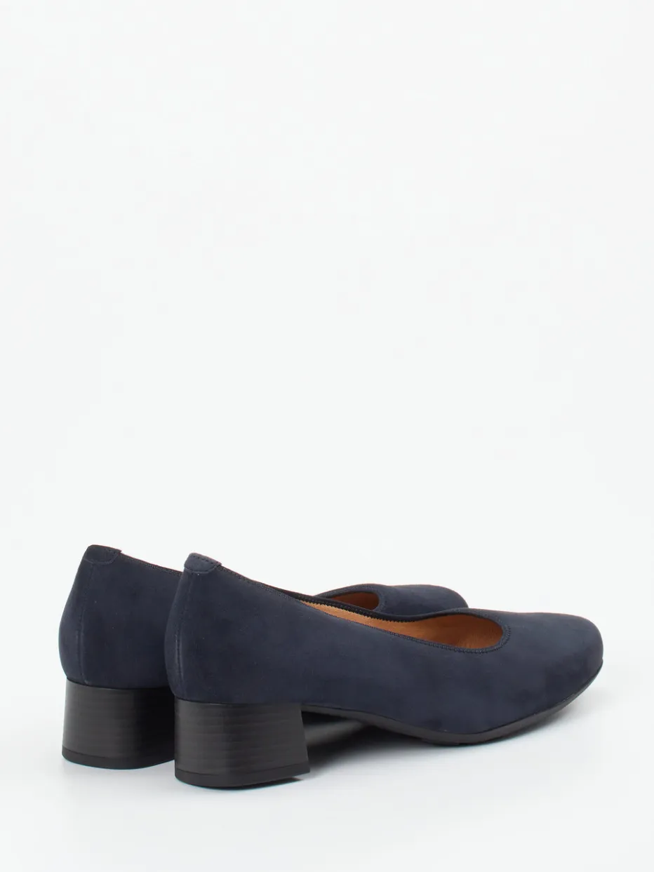 Eleganz für jeden Tag.Gabor Comfort präsentiert stilvolle Pumps für Damen mit hohem Tragekomfort. Für lange Büro-Tage und stilsichere Freizeitlooks ist dieser dunkelblaue Schlupfschuh mit Blockabsatz eine zuverlässige Wahl. Das samtig angeschliffene Veloursleder schmiegt sich angenehm an den Fuß, während eine weich gepolsterte, lederbezogene Innensohle für Bequemlichkeit sorgt. Die rund zulaufende Form und das minimalistische Design betonen den klassischen Look. Eine profilierte Gummisohle unterstützt sicheres Gehen – passend zum „Comfort Core“-Trend der Saison. Ideale Ergänzung zu Marinetönen oder gedeckten Business-Outfits. Gabor Comfort steht hier für modische Zurückhaltung mit funktionalem Anspruch.