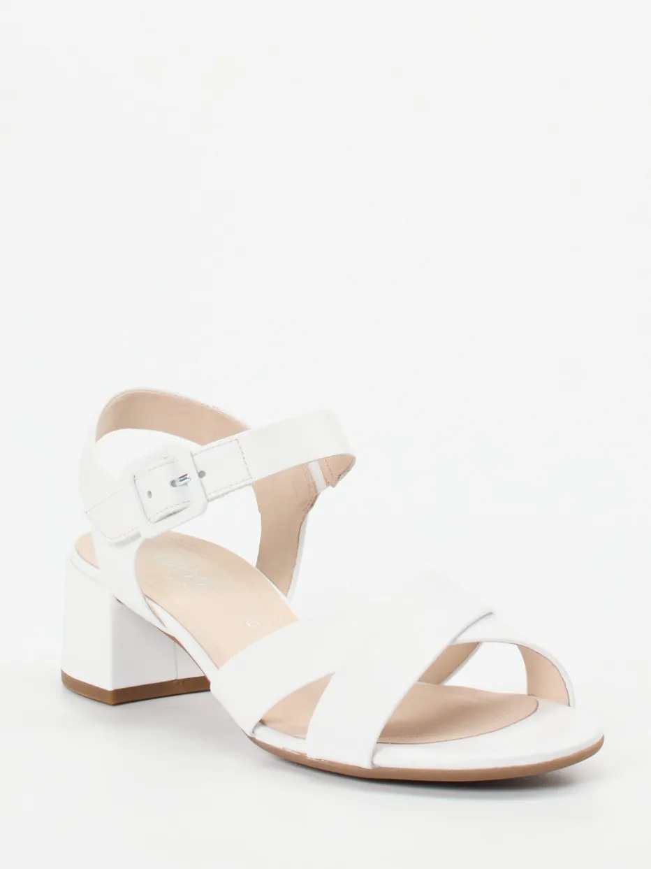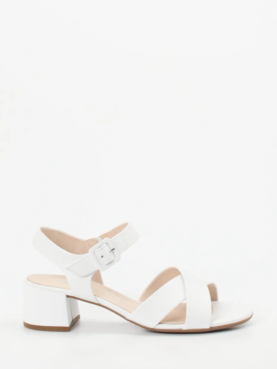 Die weiße Sandalette von Gabor Comfort vereint hochwertiges Kalbleder mit einem komfortablen Blockabsatz. Zeitlos im Design, bietet sie eleganten Minimalismus für vielseitige Anlässe.