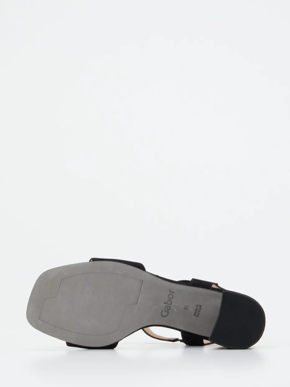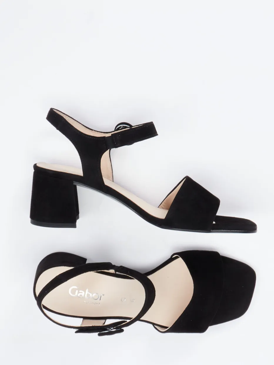 Mit ausbalancierter Silhouette, schwarzem Veloursleder und bequemem Blockabsatz verbindet diese Gabor Comfort Sandalette stilvolle Zurückhaltung mit funktionaler Raffinesse.