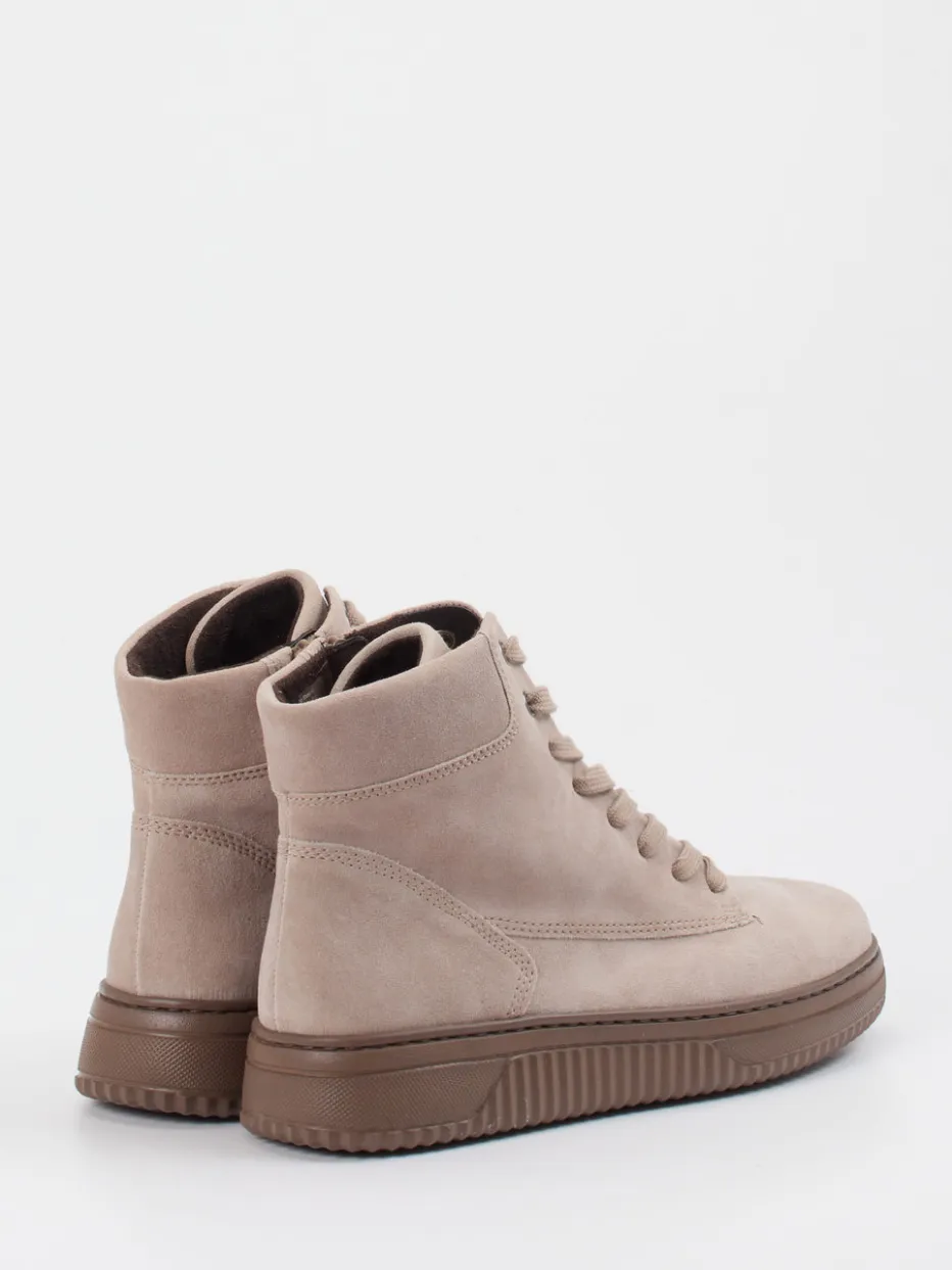 Schlichtes Design mit funktionalem Komfort.Gabor Comfort zeigt mit diesen Schnürboots eine herbsttaugliche Variante der klassischen High-Top-Stiefelette. Ideal für entspannte Stadtspaziergänge oder den Weg ins Lieblingscafé – das beige Veloursleder ist samtig matt und ergänzt durch Ton-in-Ton-Nähte sowie einen praktischen Reißverschluss an der Seite. Die knöchelhohe, rund zulaufende Form sorgt für ein harmonisches Gesamtbild im minimalistischen Streetwear-Stil. Innen angenehm mit Textil gefüttert, außen durch die griffige Gummisohle rutschfest – perfekt für den Alltag. Besonders schön kombinierbar mit monochromen Casual-Looks in Soft Neutrals. Bequemweite K und profilierte Laufsohle bieten zuverlässigen Tragekomfort mit stilvollem Understatement.