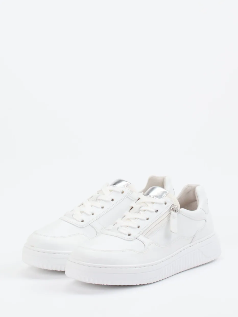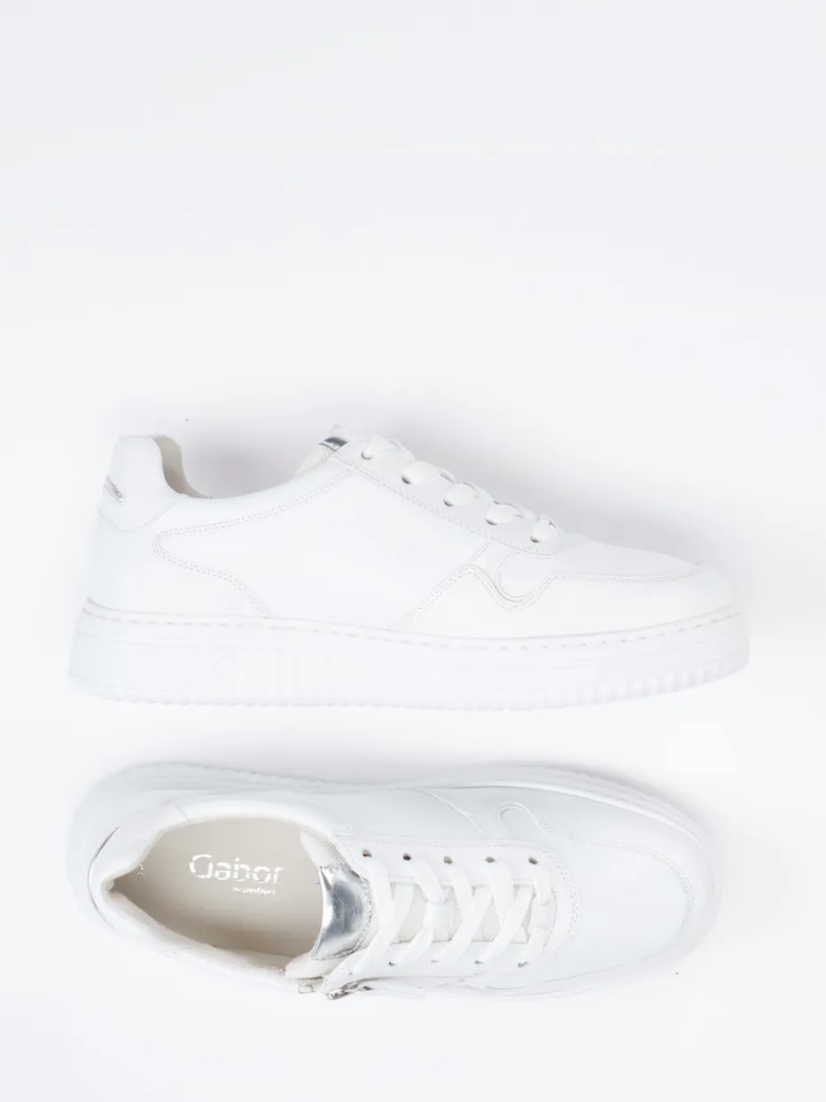 Dieser Sneaker von Gabor Comfort für Damen verbindet sportliche Akzente mit hochwertigem Kalbleder in klassischem Weiß.