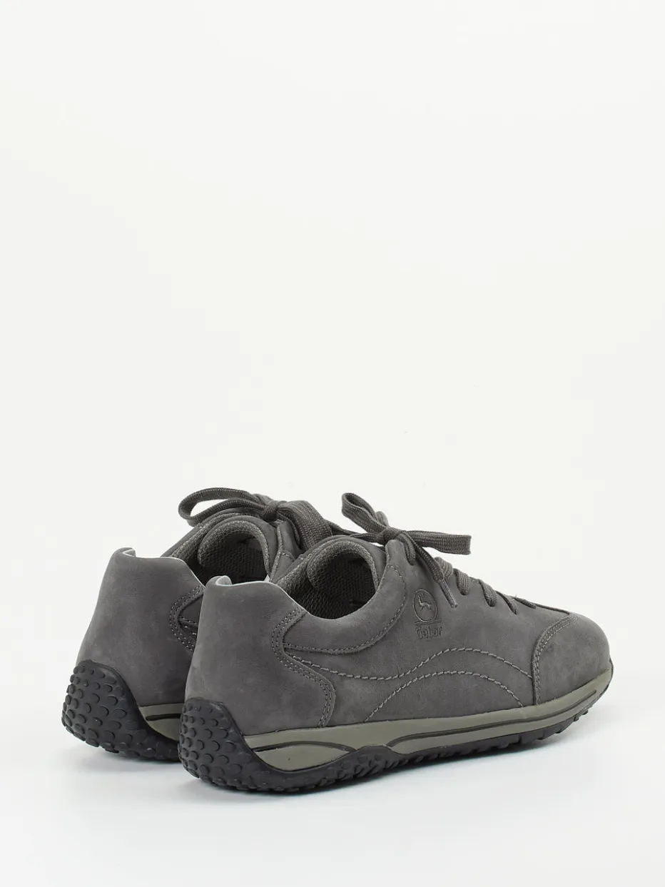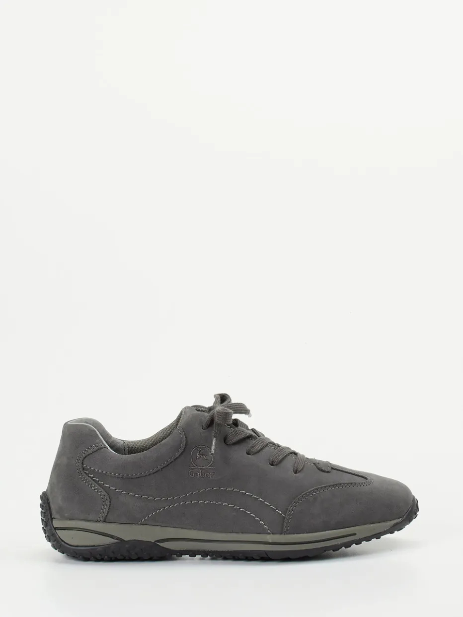 Der graue Sneaker von Gabor Comfort überzeugt mit soft angeschliffenem Nubukleder, alltagstauglichem Design und flexibler Profilsohle – ideal für bequemes Gehen bei urbanem Stil.