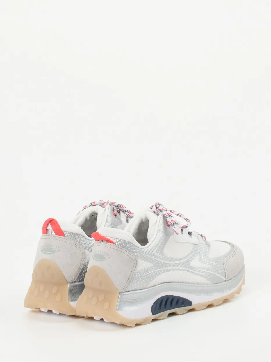 Vielseitiger Komfort mit sportlichem Profil.Der Gabor Comfort Sneaker aus der Rollingsoft Kollektion vereint stylisches Design mit funktionalen Eigenschaften. Ideal für aktive Tage in Stadt und Natur: Das weiße Mesh-Obermaterial ist besonders atmungsaktiv, graues Veloursleder verleiht dem Schuh eine samtige Struktur und verstärkt Ferse und Kappe. In Hellgrau gehalten, sorgen reflektierende Details und rot-blau-weiße Schnürsenkel für spannende Kontraste im Streetstyle-Look. Die profilierte Gummisohle bietet optimale Dämpfung und Halt auf diversen Untergründen. Ein gepolsterter Schaftrand und ein austauschbares Fußbett steigern den Tragekomfort zusätzlich. Gabor Comfort steht hier für stilvolle Alltagstauglichkeit mit ergonomischem Anspruch.