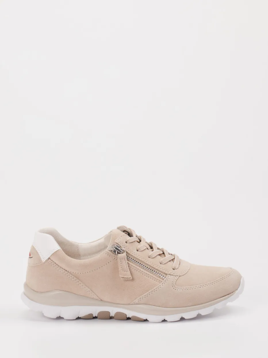 Ideal für aktive Alltage oder entspannte Wochenenden bietet der Schuh mit hochwertigem Veloursleder in einem sanften Beigeton ein angenehm softes Tragegefühl. Die klassisch flache Silhouette, kombiniert mit matter Oberfläche und weißen Kontrastdetails an der Ferse, verleiht dem Schuh ein dezentes, modernes Finish. Ausgestattet mit seitlichem Reißverschluss, Schnürung und der stoßdämpfenden Rollingsoft-Sohle zeigt sich der Sneaker von seiner praktischen Seite. Passt hervorragend zu Casualwear in neutralen Tönen.