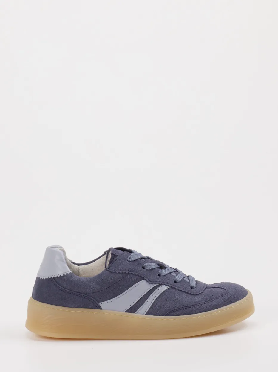 Stil trifft Komfort im Alltag.Dieser Damen-Sneaker von Gabor Comfort vereint Retro-Charme mit modernem Tragekomfort. Ideal für entspannte Alltagsmomente überzeugt das Modell durch ein Obermaterial aus Veloursleder mit weich genarbter Oberfläche. Die dominante blaugraue Farbgebung wird durch kontrastierende Seitenstreifen in Hellgrau und Beige stilvoll ergänzt. Klassisch rund geformt, mit Schnürung und verstärkter Fersenkappe, sorgt die bequeme Gummisohle in Naturton für zuverlässigen Halt. Der Schuh ist ein stilvoller Begleiter – perfekt abgestimmt auf Casualwear-Trends mit sportlicher Note. Ein Gabor-Komfortmodell, das Alltagstauglichkeit und modische Leichtigkeit stilvoll verbindet.