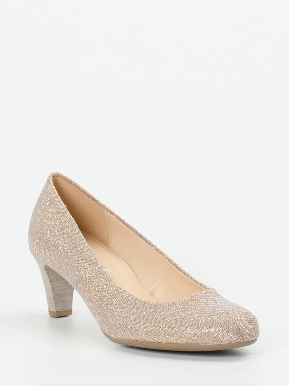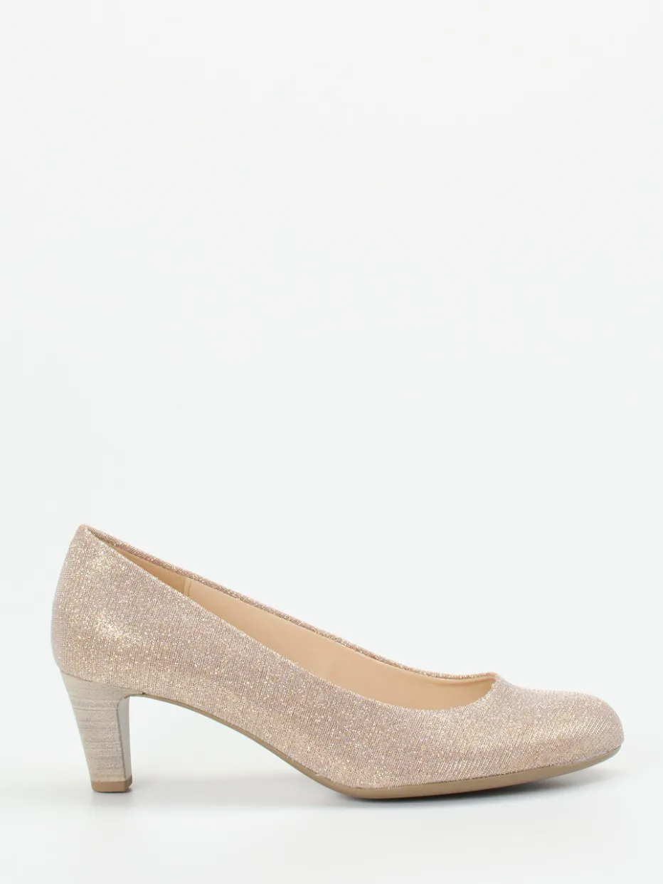 Für besondere Momente gemacht: Das Modell vereint schimmerndes Metallicleder mit dezentem Glitzereffekt in edlem Champagner. Die rund geschwungene Silhouette und der stabile 5,5 cm hohe Absatz geben eleganten Halt – perfekt für Abendveranstaltungen und festliche Anlässe. Die Schlupfform bietet bequemen Einstieg, während das gepolsterte Fußbett und das Lederinnenfutter den Tragekomfort steigern. Inspiriert vom Vintage-Minimalismus und aktuell im Trend „Metallic Accents AW24“, wirkt der Schuh klassisch und modebewusst zugleich. Kombiniert mit Metallic-Clutch und Nude-Strumpfhosen entsteht ein stilvoller Auftritt.