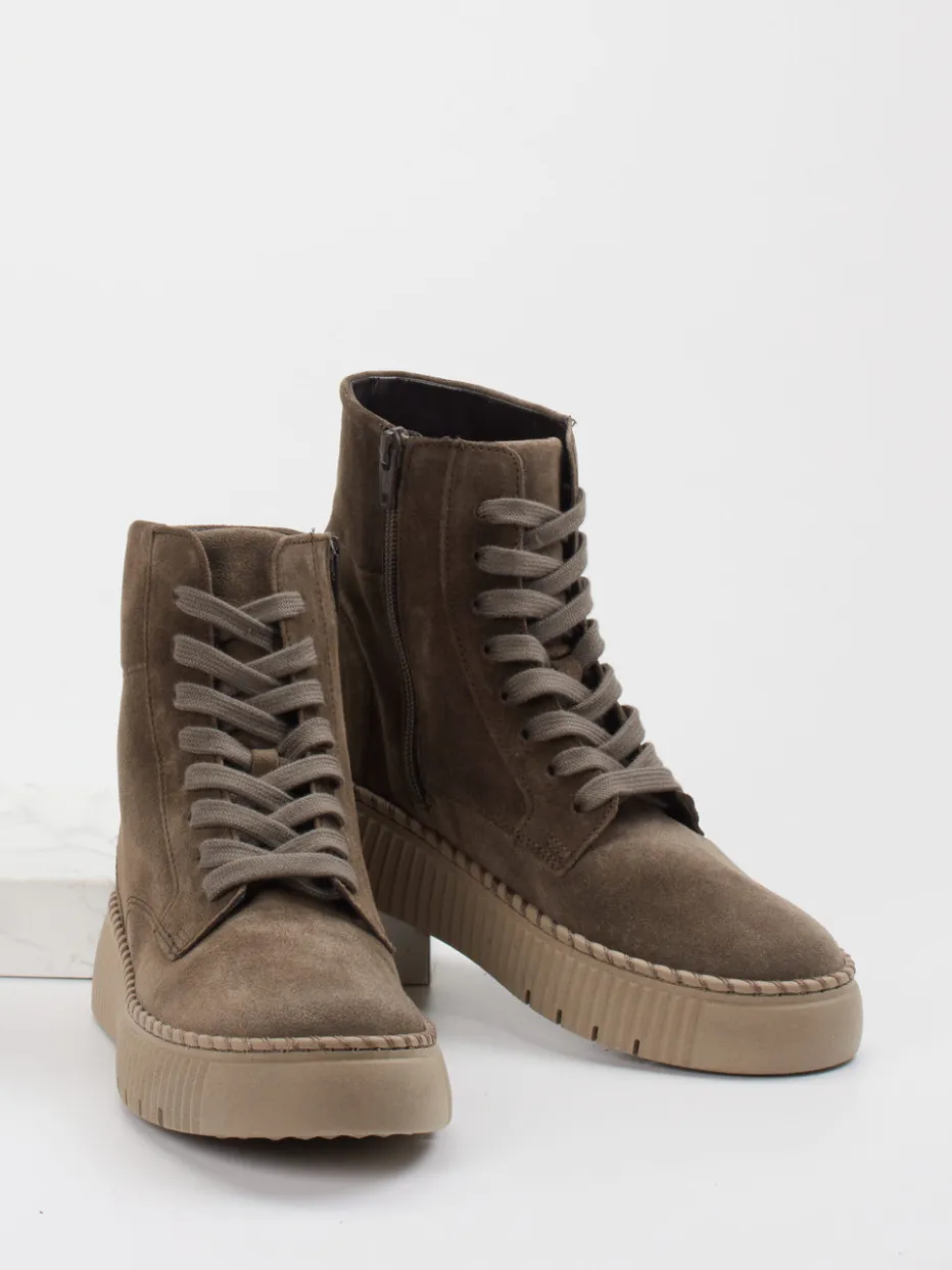 Stilvoll durch den Alltag.Die Marke Gabor präsentiert mit dieser Damen-Stiefelette eine moderne Schnürboots-Variante. Für Spaziergänge an kühlen Herbsttagen oder entspannte City-Touren bietet das Modell zuverlässigen Tragekomfort. Das samtig angeschliffene Veloursleder in einem natürlichen Taupe-Ton wirkt edel und unaufgeregt. Die knöchelhohe Form mit runder Vorderpartie, praktischer Schnürung und funktionalem Innenreißverschluss sorgt für bequemes An- und Ausziehen. Die grob profilierte Gummisohle mit dezentem Branding garantiert guten Grip. Stilistisch passt das ruhige Design mit Ton-in-Ton-Nähten hervorragend zum „Quiet Luxury“-Trend. Ein authentischer Begleiter mit urbaner Lässigkeit und durchdachter Qualität von Gabor.