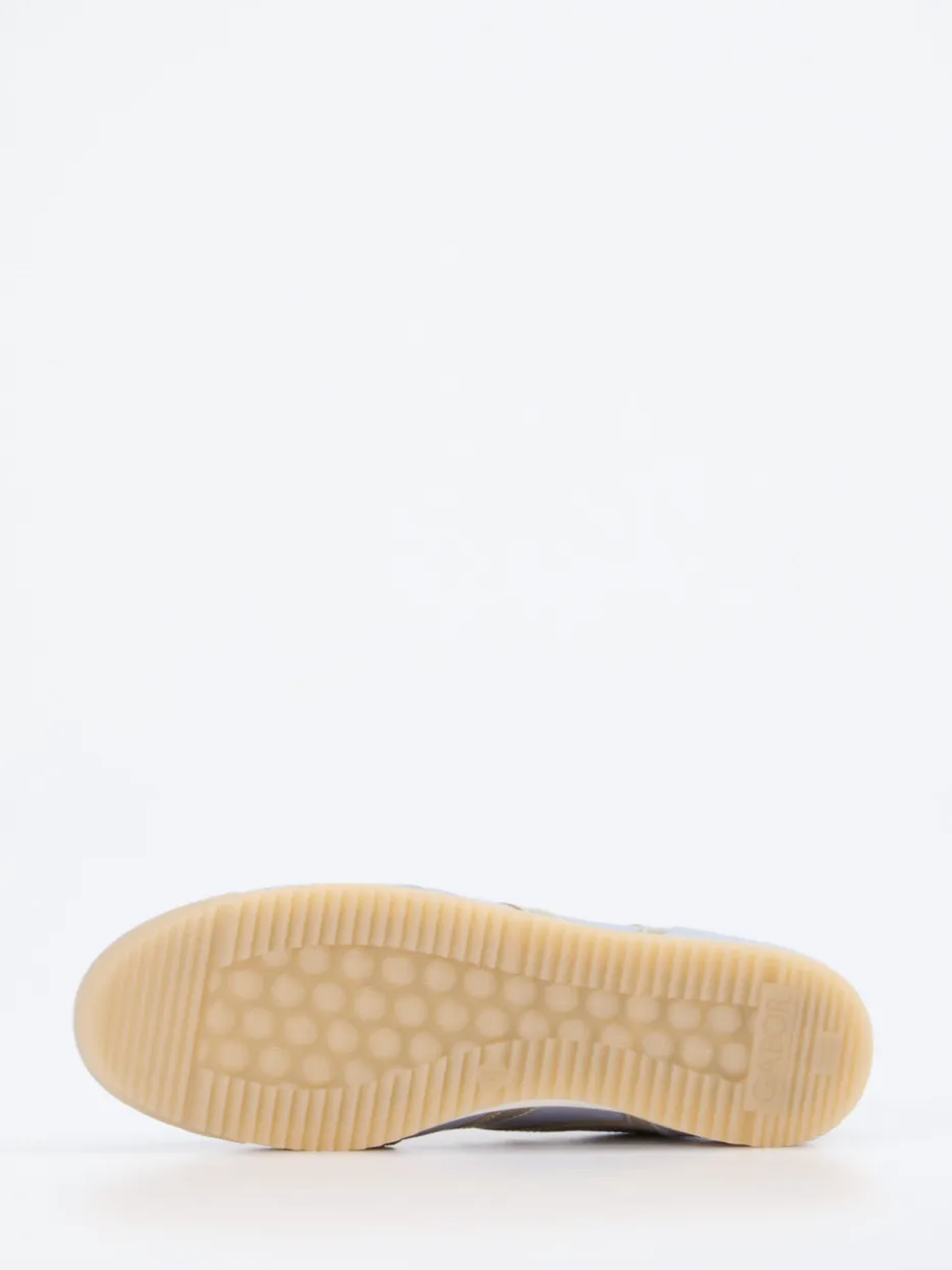 Pastell trifft Retro – mit schimmerndem Akzent. Die Marke Gabor präsentiert einen sportlich-eleganten Damen-Sneaker im Retro Running Stil. Für entspannte Stunden unterwegs vereint dieser Schuh pastellblaues Veloursleder mit champagnergoldenen Metallic-Details und cremefarbenen Kontrasteinsätzen. Die schnürbare Silhouette ist flach und schmal gehalten und bietet zusammen mit dem gepolsterten Schaftrand wohltuenden Tragekomfort. Glatt- und Veloursleder wechseln sich optisch reizvoll ab, während die profilierte Gummisohle für Trittsicherheit sorgt. Durch die harmonische Farbigkeit fügt sich der Sneaker sowohl in Casual-Outfits als auch in moderne Urlaubslooks. Ein urbaner Allrounder mit femininer Präsenz und markentypischer Bequemlichkeit.