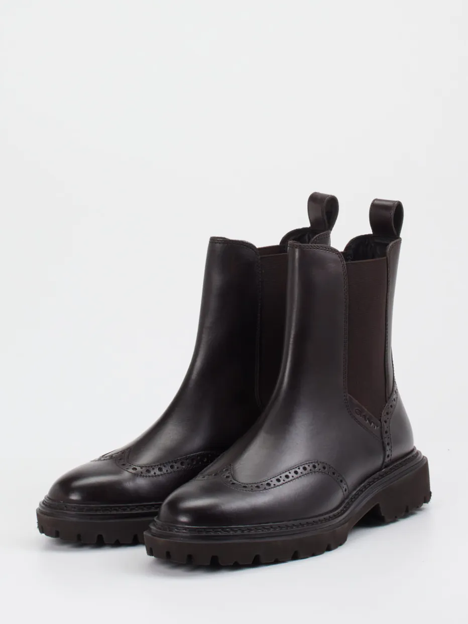 Diese Stiefelette von Gant vereint klassische Eleganz mit modernem Komfort und präsentiert sich in hochwertigem Kalbleder in tiefem Kastanienbraun. Die Form wirkt schlank und bodenständig, was durch die einfarbige Ästhetik unterstrichen wird. Der obere Bereich zeigt eine schlichte Linienführung, die durch das glatte Leder eine ruhige, edle Ausstrahlung erhält. Perforierungen setzen das Blatt in Szene. Die Materialität vermittelt ein geschmeidiges Gefühl, das die Formen unterstützt, ohne von der klaren Silhouette abzulenken. Eine Stiefelette, die sich mühelos zu edlen wie casual Looks tragen lässt und jeden Auftritt selbstbewusst abschließt. Mit einem speziellen Lederpflegemittel bleibt die Oberfläche geschmeidig und der Glanz dauerhaft erhalten zudem empfiehlt sich gelegentliches Einreiben mit einem weichen Tuch um das Leder zu nähren und kleine Trockenheitsstellen zu vermeiden