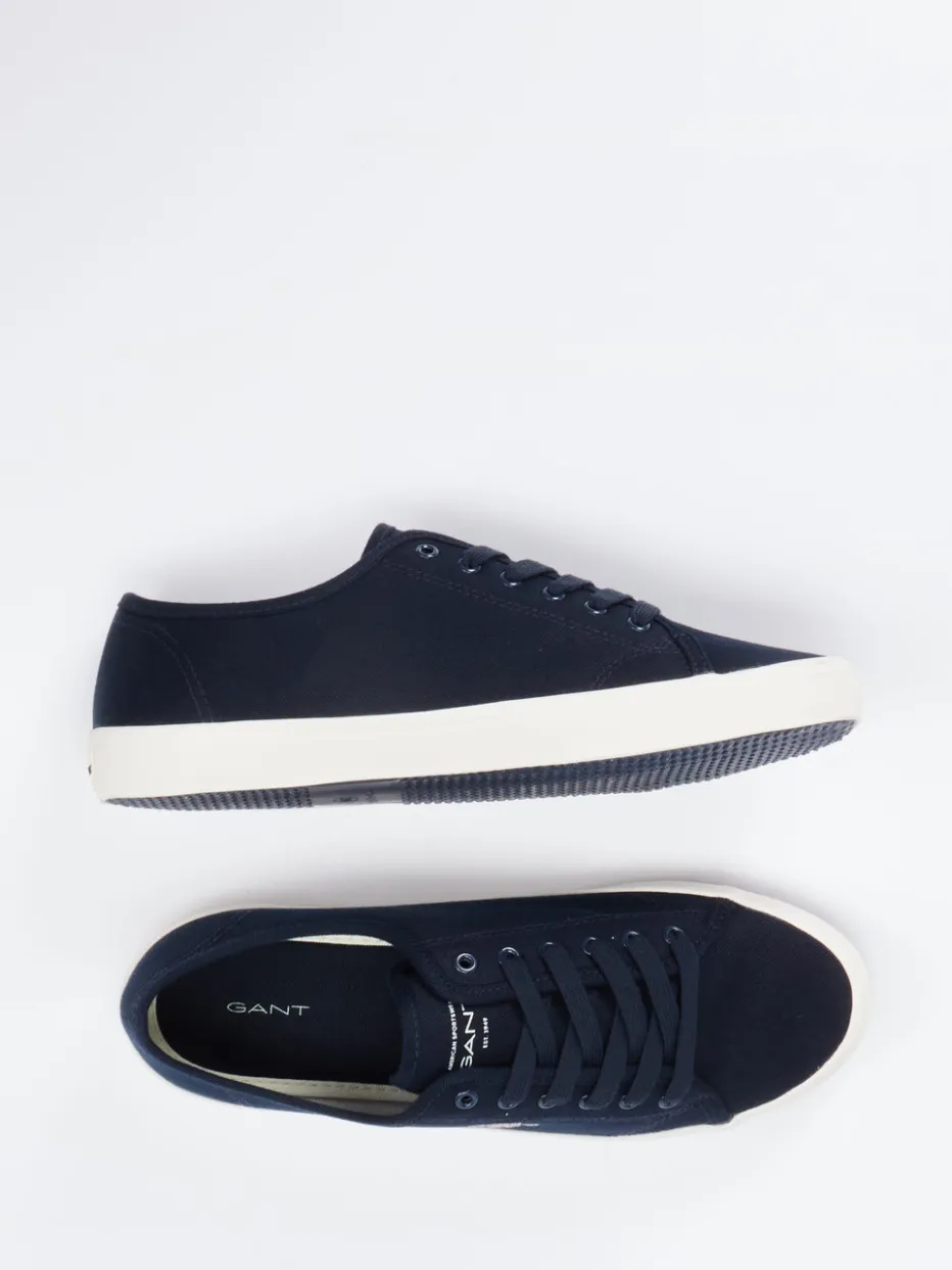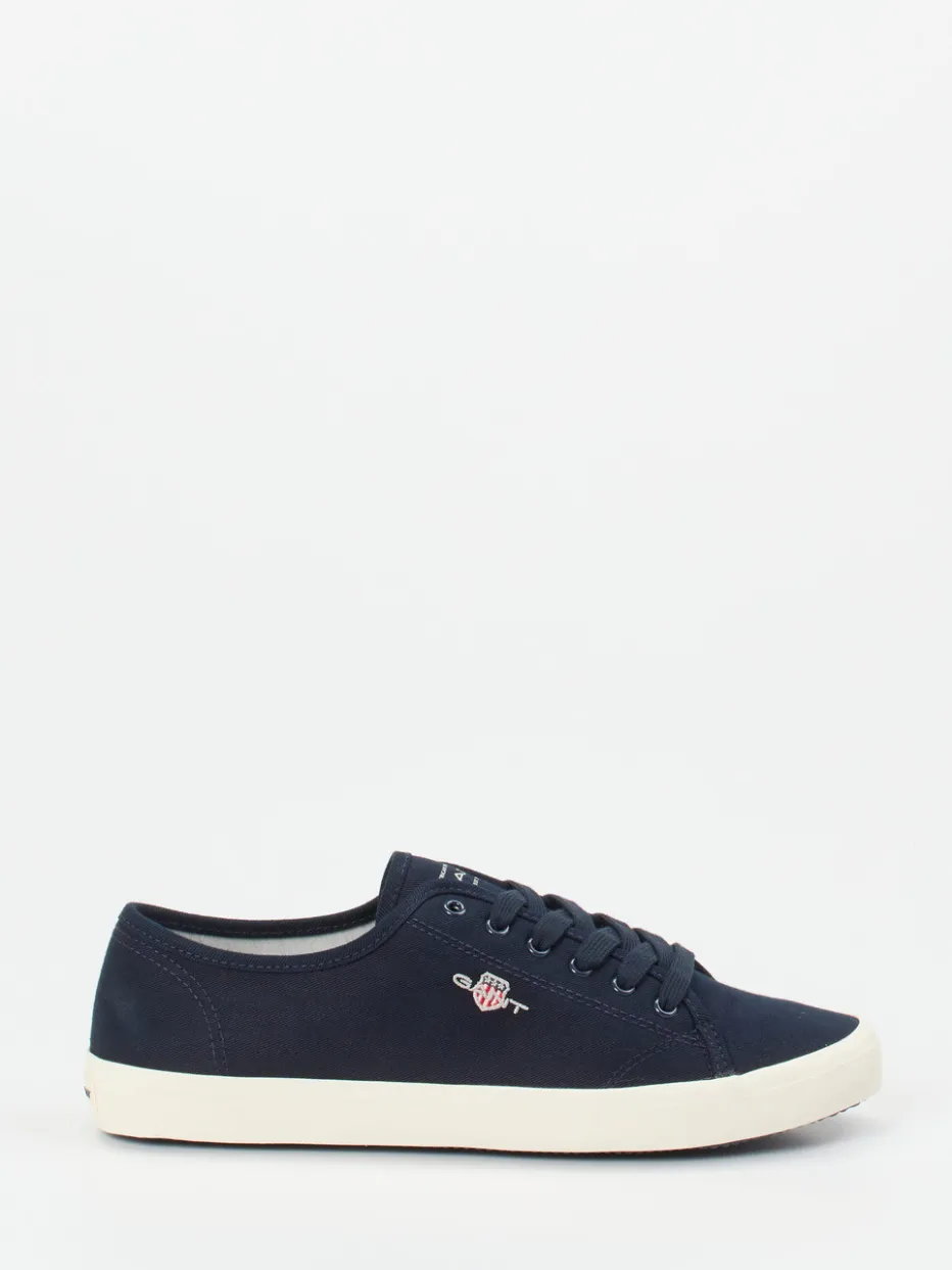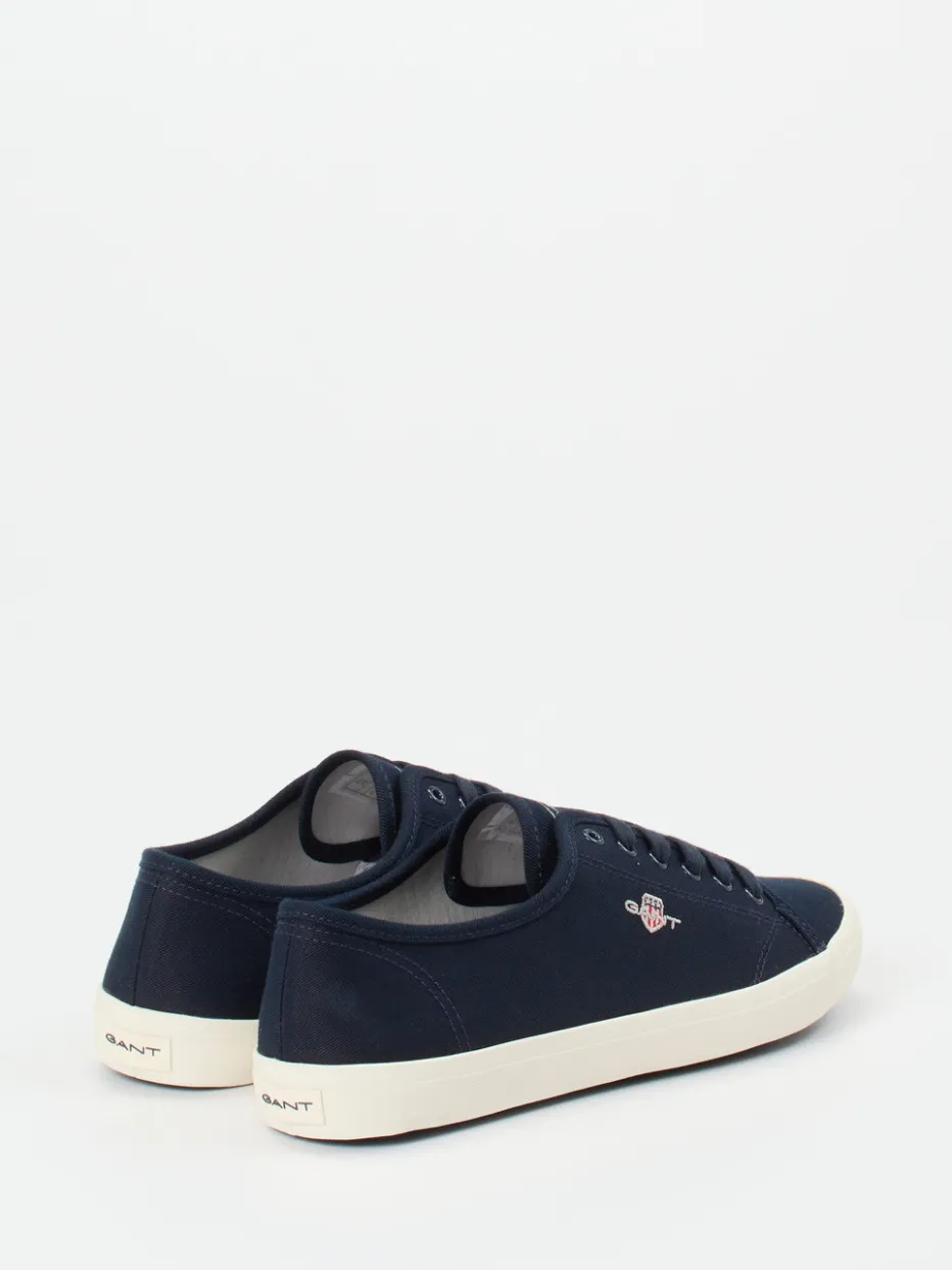 Sommerfrische im Retro-Look.Die amerikanische Marke Gant präsentiert mit diesem Sneaker ein zeitloses Modell für Damen im Low-Top-Stil. Ob auf Städtetrips oder beim entspannten Bummel durchs Viertel – der dunkelblaue Canvas mit matter Oberfläche verleiht dem Schuh seinen preppy Charakter. Die tonale Schnürung und das fein gestickte Markenlogo unterstreichen das reduzierte Design. Die vulkanisierte, cremefarbene Gummisohle wirkt subtil kontrastierend und sorgt für rutschhemmenden Halt. Kombiniert mit Chinohose und T-Shirt entsteht ein cleaner Sommer-Look. Ein vielseitiger Klassiker mit dem authentisch-sportiven Stil von Gant.