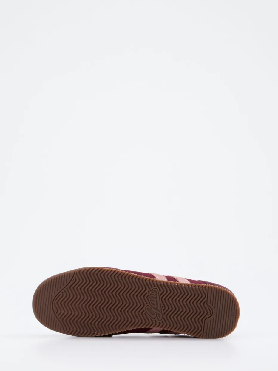 Streetstyle mit Heritage-Twist.Gant präsentiert mit diesem Sneaker eine gelungene Kombination aus Retro-Design und alltagstauglichem Komfort. Der bordeauxrote Farbton mit Akzenten in Altrosa und Cremeweiß sorgt in Kombination mit der flach-schmalen Silhouette und dem Color-Blocking-Look für ein trendbewusstes Erscheinungsbild. Die Kombination aus Velourleder – samtig angeschliffen – und luftigem Nylon/Textil wird ergänzt durch eine profilierte Gummisohle und eine klassische Schnürung. Goldfarbene Logo-Details und eine gepolsterte Einstiegspartie unterstreichen den sportiv-edlen Charakter dieses Modells, das perfekt zu Jogpants und Retro-Sportsocken passt. Ein Sneaker mit hochwertigem Finish und markentypischer Lässigkeit für stilbewusste Alltagsmomente.