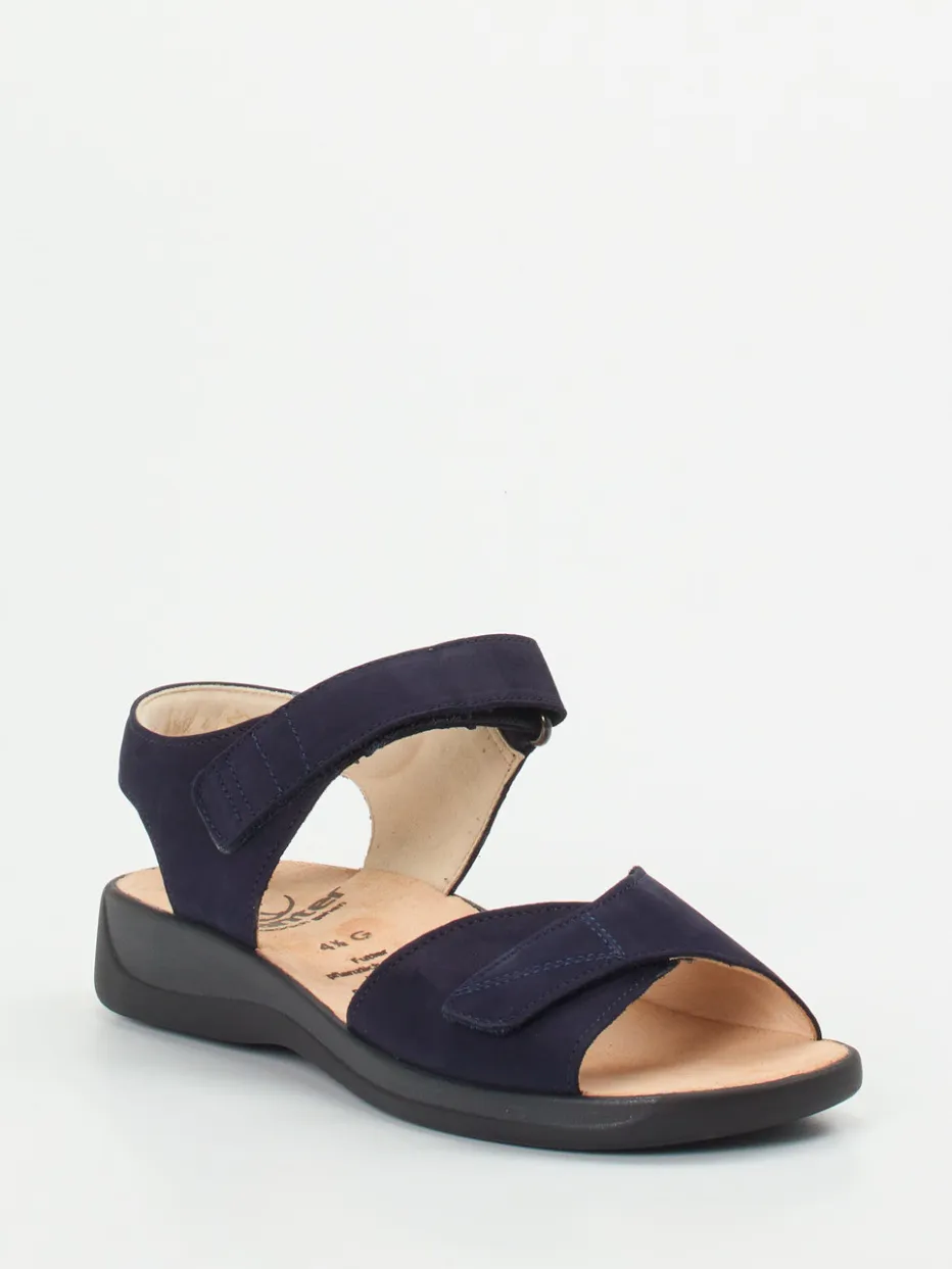 Fein angeschliffenes Nubukleder in Nachtblau trifft auf ein atmungsaktives Lederfutter mit hautfarbenem Ton – minimalistisch verarbeitet mit tonalen Ziernähten. Die beiden Klettverschlüsse bieten individuelle Weitenregulierung, das gepolsterte, mit pflanzlich gegerbtem Kalbleder bezogene Fußbett sorgt für maximalen Komfort. Eine flexible PU-Sohle mit rutschhemmendem Profil rundet die Funktionalität ab. Optimal kombinierbar zu Leinenhosen oder luftigen Alltagsoutfits.