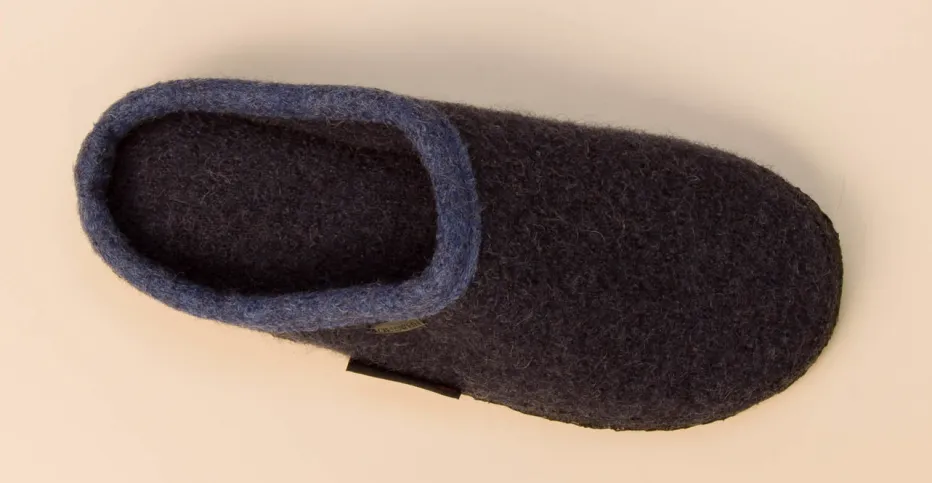 Giesswein präsentiert mit diesem Hausschuh einen hochwertigen Pantoffel für Damen und Herren. Perfekt für gemütliche Stunden auf Holzfußböden oder Fliesen: Der Filzpantoffel besteht aus atmungsaktiver, filziger Wolle mit angenehm weicher Haptik. Das geschlossen gearbeitete Vorderblatt schützt die Zehen, während der offen gehaltene Fersenbereich bequemes Reinschlüpfen ermöglicht. Die naturkautschukbasierte Gummisohle bietet sicheren Halt und Flexibilität. Optisches Highlight: der farblich abgesetzte Schaftrand in Jeansblau, der dem minimalistisch-skandinavischen Design Tiefe verleiht. Stilvoll im Hygge-Stil, ideal kombinierbar mit feinen Wollsocken. Unverkennbar Giesswein – funktionaler Hausschuhkomfort in feinster Verarbeitung.