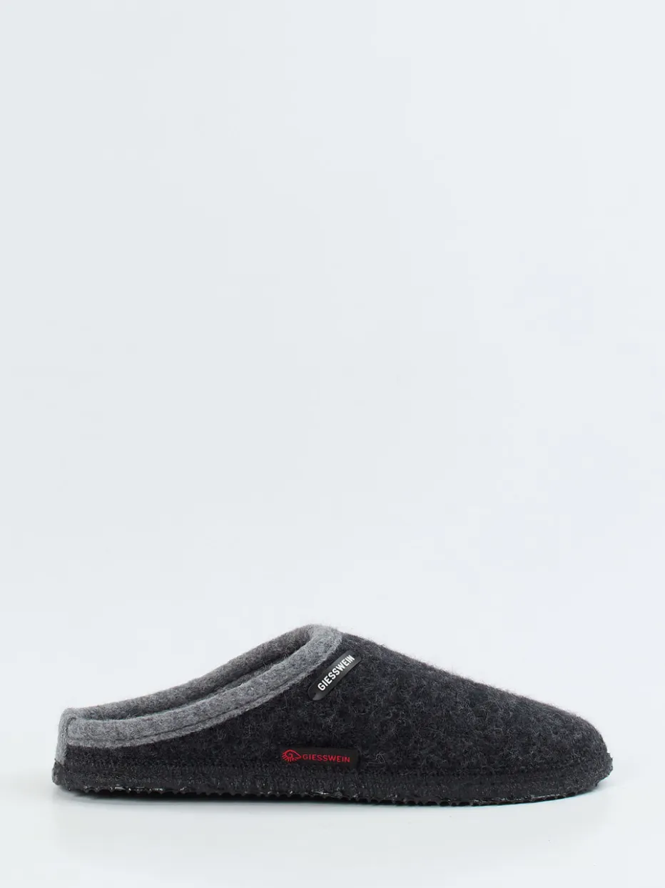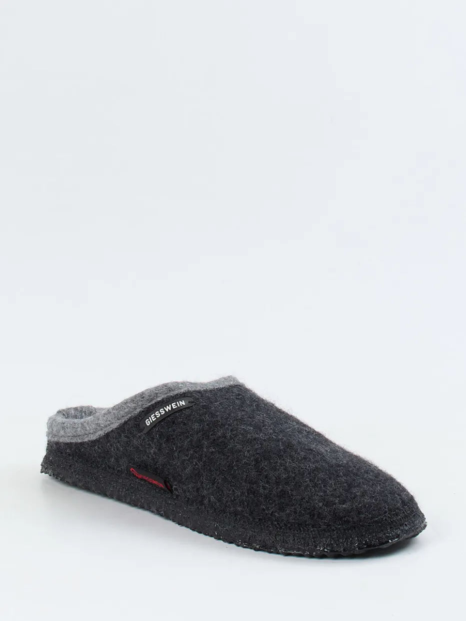 Alpiner Komfort neu interpretiert.Der Hausschuh von Giesswein begeistert in der Kategorie der Hüttenschuhe mit komfortabler Schlupfform und durchdachtem Materialeinsatz. Ideal für entspannte Stunden im Wohnraum bietet das Modell temperaturausgleichenden Wollfilz mit typisch filziger Oberfläche in zeitlosem Anthrazitgrau. Die offene Ferse in Clog-Silhouette erleichtert das Anziehen, während die rutschhemmende Naturgummisohle einen sicheren Stand auf glatten Böden gewährt. Hellgraue Filzeinfassung, rote Logo-Stickerei und ein seitliches Weblabel setzen dezente Akzente. Inspiriert von minimalistischer Ästhetik und alpinem Erbe fügt sich der Schuh harmonisch in Indoor-Styles ein. Giesswein steht für hochwertige Naturmaterialien und funktionale Wohlfühlprodukte.