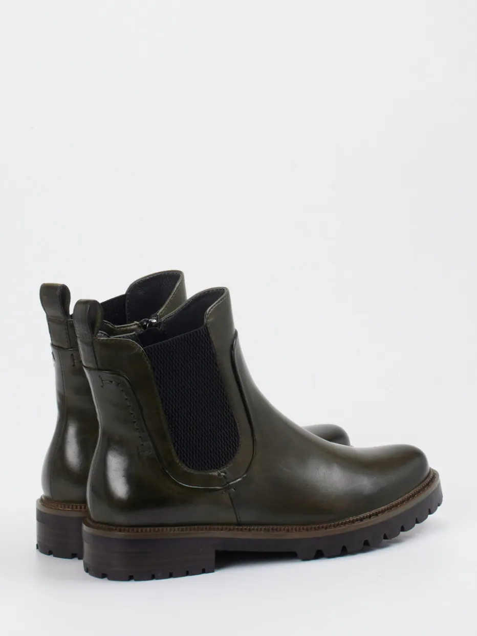 Glänzendes Lammleder in Dunkelolivgrün trifft auf puristische Chelsea-Form mit funktionalem Reißverschluss – ein stilvolles Update für urbane Looks.