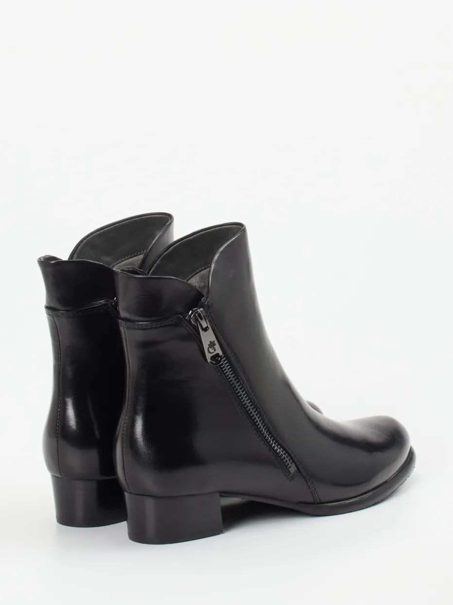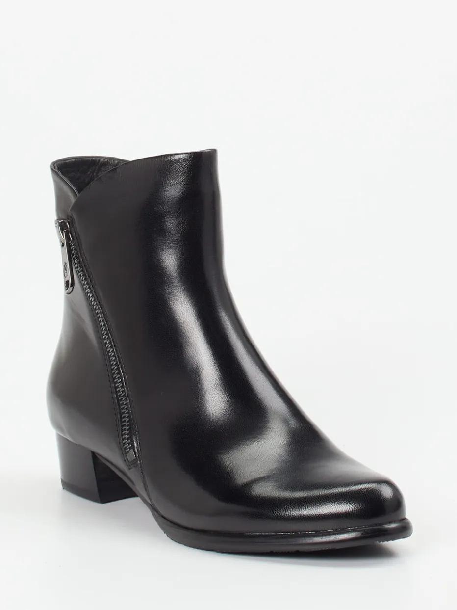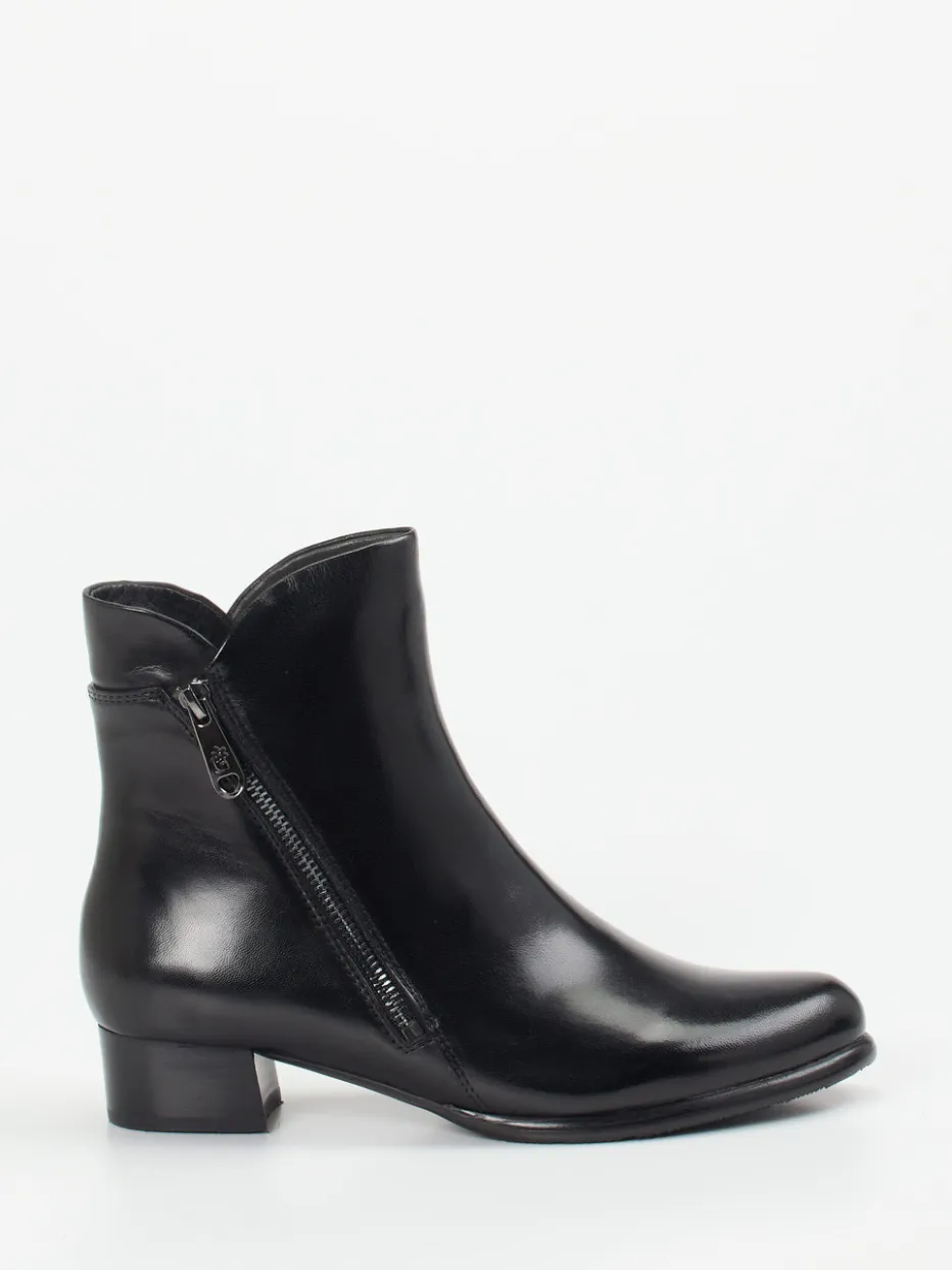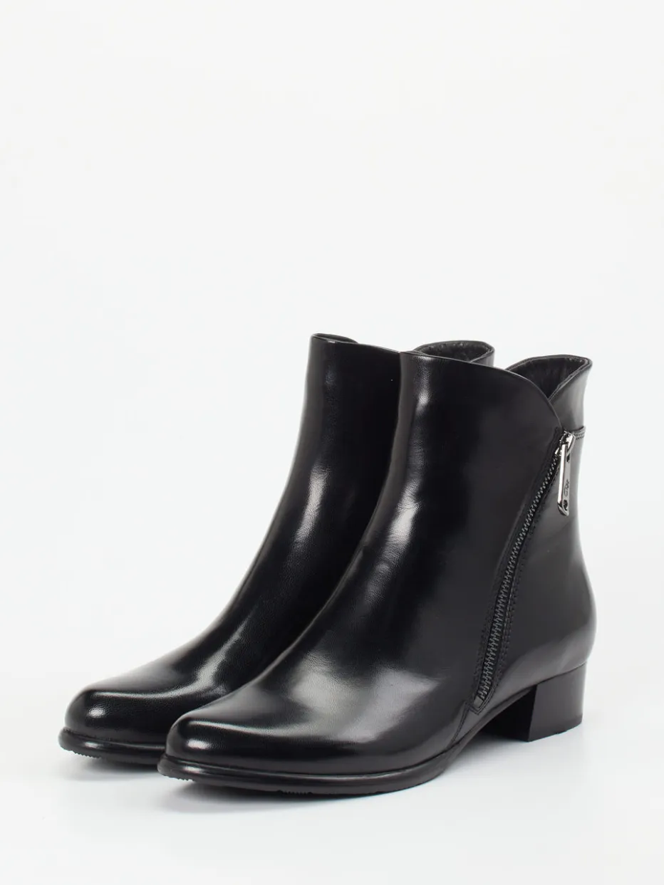 Diese klassisch-knöchelhohe Stiefelette aus glänzendem Lammleder verbindet minimalistisches Design mit alltagstauglichem Komfort. Ein dezenter Reißverschluss akzentuiert den cleanen Look.