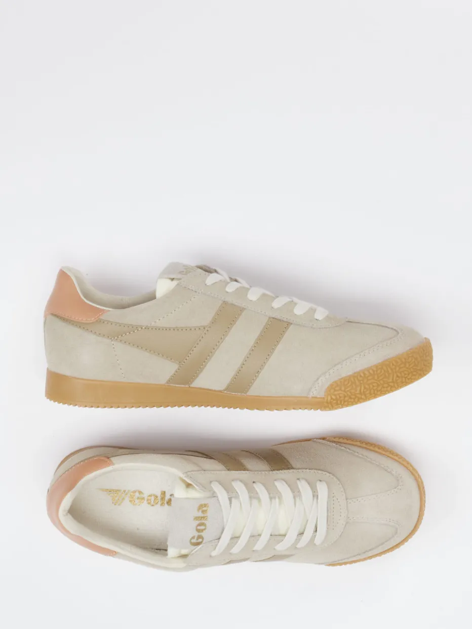 Beigetöne treffen auf Retro-Vibes. Gola präsentiert mit diesem Retro-Sneaker eine stilvolle Wahl im Freizeitsegment. Die flache Silhouette wird durch weiches Veloursleder in sanften Beigetönen definiert, ergänzt durch tonale Nähte und einen farblich akzentuierten Fersenbereich. Seitliche Streifenapplikationen und eine griffig profilierte Gummisohle unterstreichen den 70er-inspirierten Look. Der Schnürverschluss sorgt für Anpassbarkeit, während das Textilfutter und die Einlegesohlentauglichkeit den Tragekomfort erhöhen. Ein Modell, das sich mühelos in moderne Streetwear-Styles integrieren lässt – ideal zu monochromen Outfits oder sportlich-nostalgischen Kombinationen. Ein authentischer Unisex-Sneaker mit subtiler Vintage-Note – stilvoll und alltagstauglich.