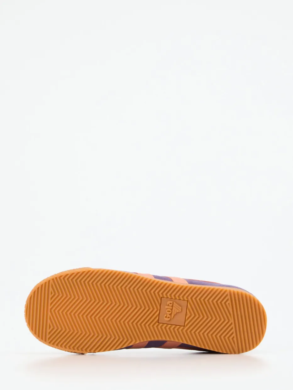 Der Retro-Sneaker von Gola vereint samtig angeschliffenes Veloursleder mit einer harmonischen Farbkomposition in Violett und Pfirsichrosa. Ein stilbewusstes Modell mit Streetwear-Charakter.