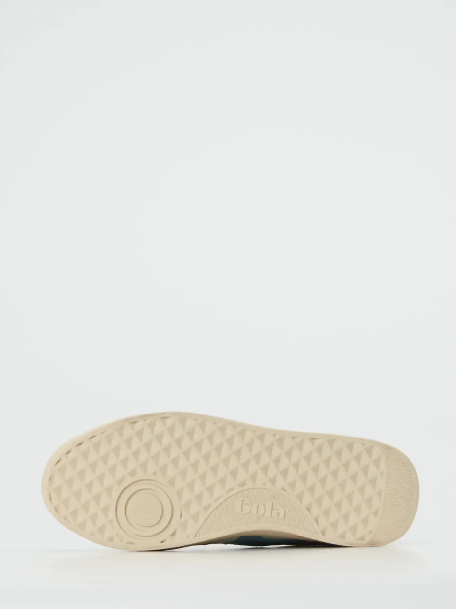 Pastellfarben neu interpretiert.Gola präsentiert mit diesem Low-Top-Sneaker eine moderne Hommage an den Retro-Sportstyle. Wenn Alltag auf Stilanspruch trifft, überzeugt dieser Sneaker mit weichem Synthetik-Obermaterial und strukturierten Veloursleder-Akzenten. Die Off-White-Basis wird durch pastellige Farbakzente in Hellblau und Violett belebt, ergänzt durch eine graue Fersenkappe. Klassisch-rund geschnitten, mit gepolstertem Schaftrand, Schnürverschluss und Logo-Details fügt sich das Modell nahtlos in aktuelle Y2K- und Streetwear-Trends ein. Kombinierbar mit hellen Jeans oder sportiven Pastell-Accessoires. Gola verbindet optische Frische mit alltagstauglichem Komfort und markentypischem Detailgespür.