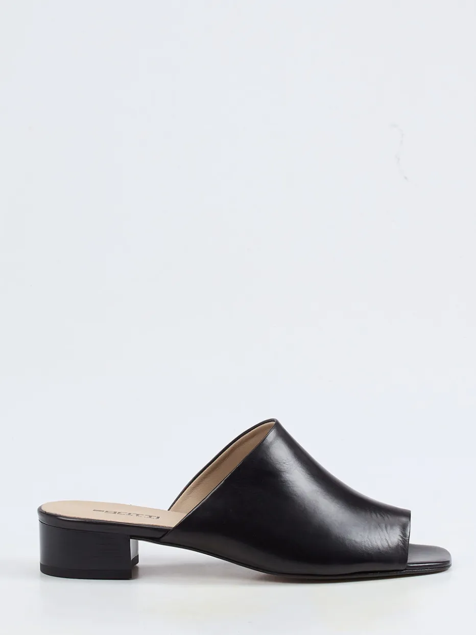 Gritti interpretiert klassische Mules auf moderne Weise. Die schwarze Pantolette für Damen überzeugt durch klares Design und eine komfortable Passform.