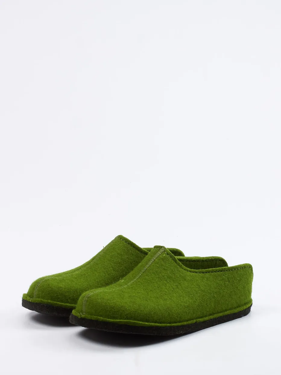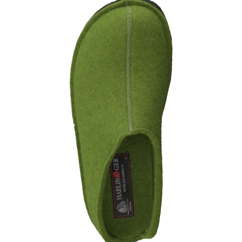 Wohliger Komfort für entspannte Stunden.Der Filzpantoffel von Haflinger verbindet traditionelles Design mit modernen Komfortansprüchen. Ideal für kalte Böden und entspannte Abende: Der Unisex-Hausschuh besteht aus reiner Schurwolle mit angenehm weicher Haptik. Das kräftige Moosgrün unterstreicht die klare, geschlossene Silhouette mit rundem Vorderfuß und dezenter Mittelnaht. Ein seitliches Logo-Emblem sowie die schwarze, rutschhemmende Filzsohle mit Latex-Beschichtung runden das minimalistische Design ab. Die offene Fersenpartie erleichtert das Hineinschlüpfen, ohne Halt einzubüßen. Teil der „Natural Comfort“-Linie – lässig, reduziert, nachhaltig. Natürliche Materialien, funktionelles Design – typisch Haflinger.