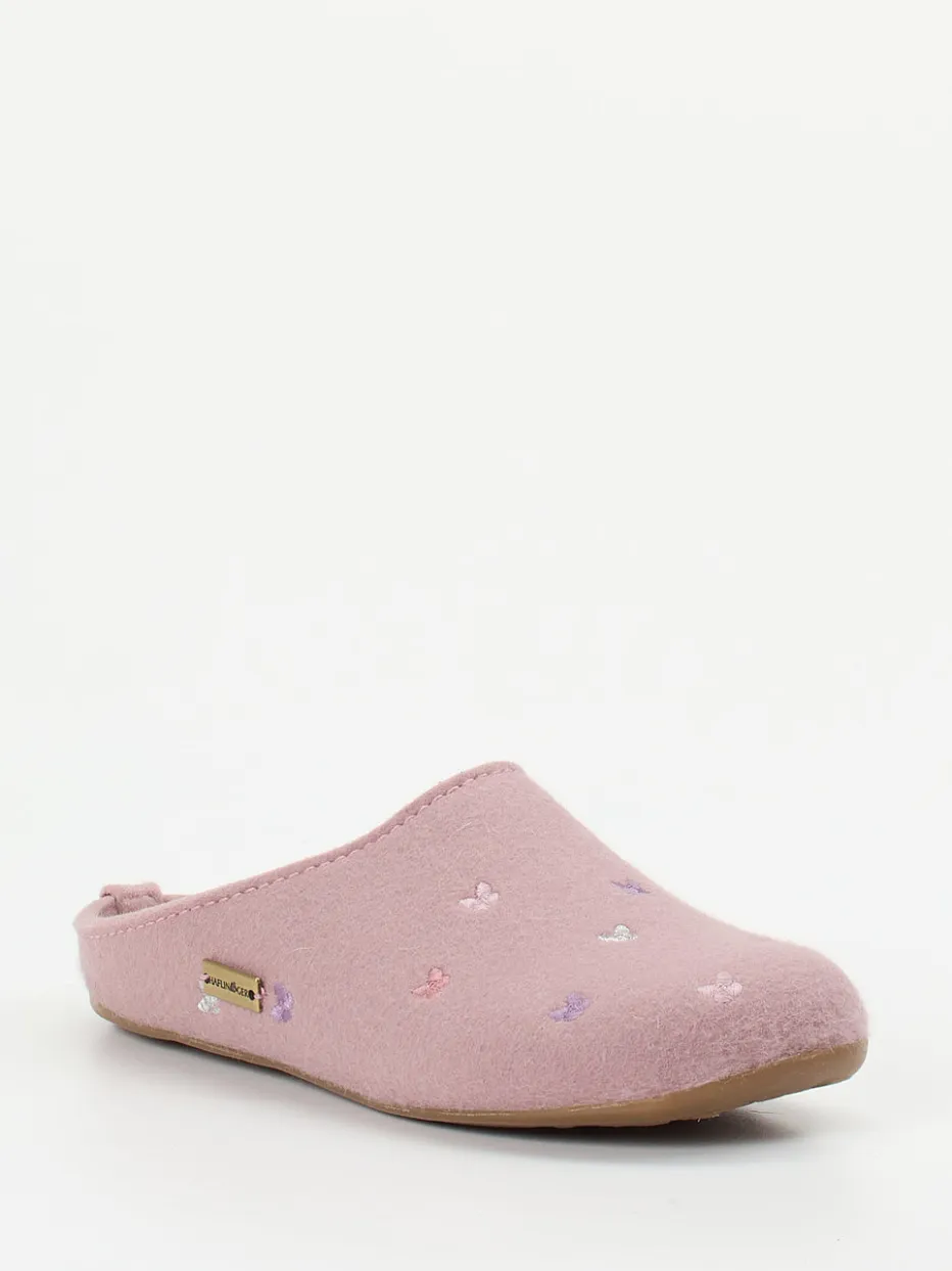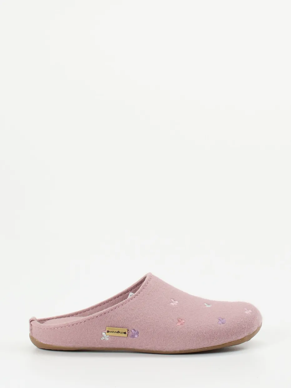 Haflinger kombiniert bei diesen Pantoffeln hochwertiges Wollfilz mit zarter Stickerei und sorgt so für stilvolle Behaglichkeit im Alltag.