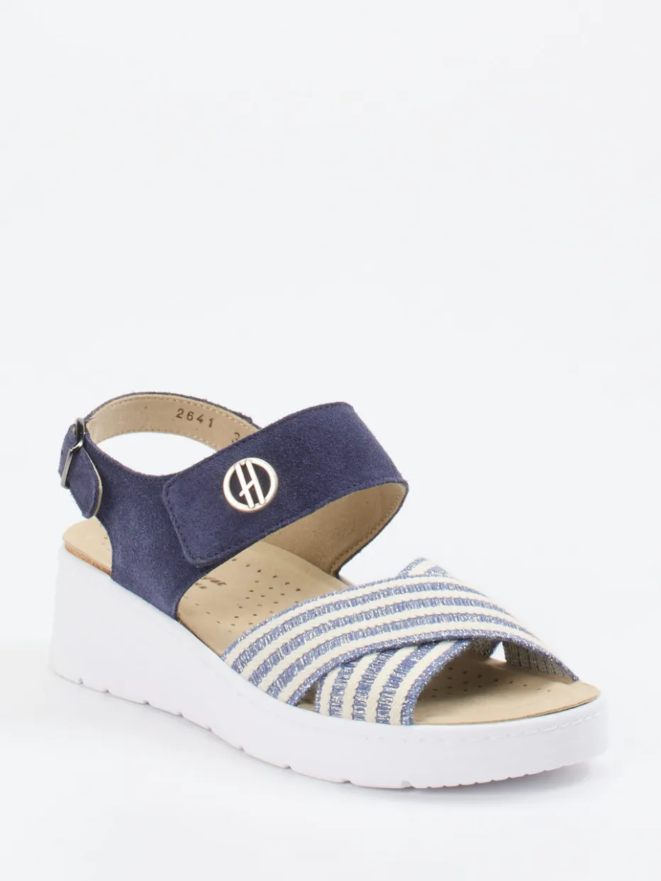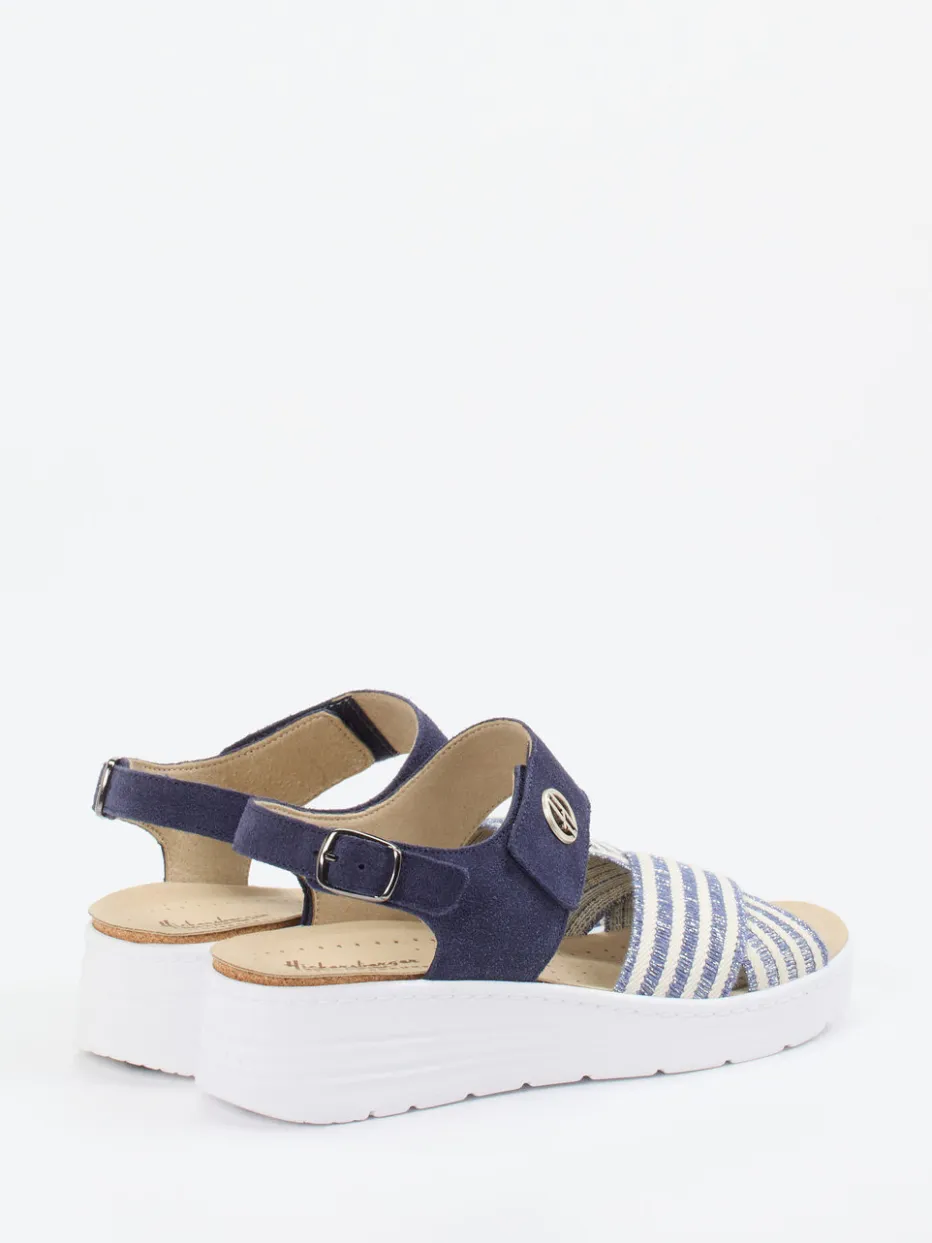 Diese Hickersberger Sandale vereint sommerlichen Chic mit fußfreundlicher Funktionalität. Textil in maritimen Farben trifft auf ein gepolstertes Fußbett mit Kräutereinlage.