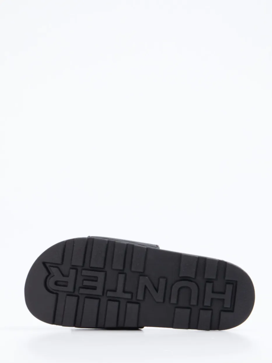 Strand-ready mit urbanem Spirit.Hunter interpretiert die klassische Badepantolette neu. Die tiefschwarze Unisex-Slide vereint matt strukturiertes Synthetikmaterial mit einem großzügig geformten Fußbett und einer robusten Gummisohle. Der breite Riemen mit Markenprägung akzentuiert das minimalistische Design, während die profilierte Laufsohle optimalen Halt auf nassem Untergrund bietet. Ideal für Sommertage, Urlaub oder entspannte Stunden zu Hause – inspiriert von Streetwear und „Quiet Luxury“-Trend. Lässt sich mühelos mit Badehose oder Lounge-Wear kombinieren. Hunter steht für funktionalen Komfort mit zeitlosem Stilanspruch.