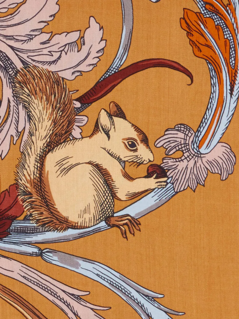 Glänzender Seidenmix und ein kunstvoller Eichhörnchen-Print verleihen diesem quadratischen Tuch eine edle Ausstrahlung mit verspieltem Twist – stilvoll für Büro und Freizeit.