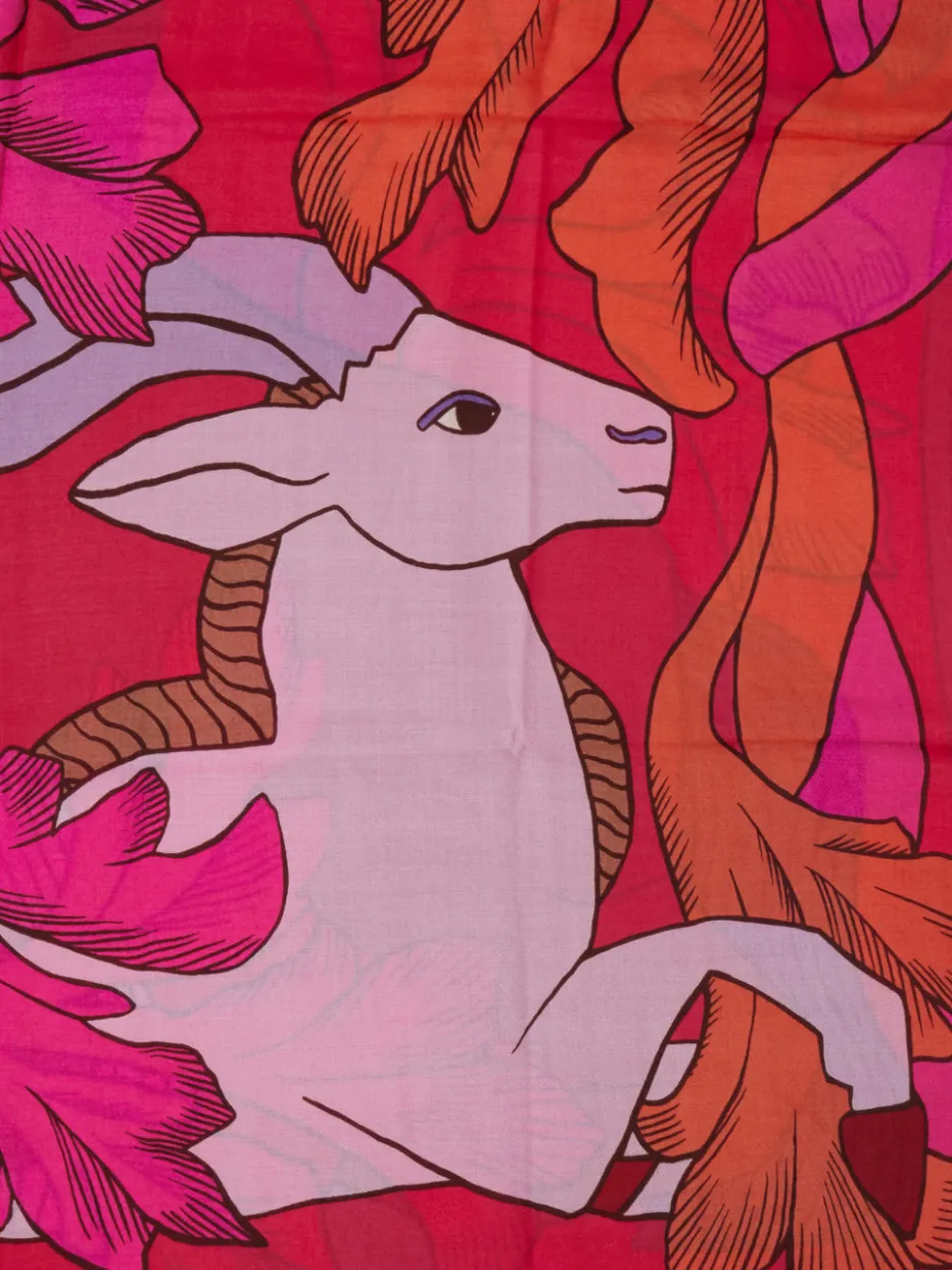 Dieser extravagante Schal der Marke Inoui Editions aus reiner Wolle bringt die Kunst in Ihre Garderobe: Das kreative Motiv zeigt zwei Pferde und einen Ziegenbock vor einem abstrakten botanischen Hintergrund. Der kraftvolle Print leuchtet in roten, pinken und orangen Farben, die durch Erdtöne ergänzt werden. Der fein strukturierte Stoff unterstreicht die edle Verarbeitung und sorgt für ein angenehmes Trageerlebnis. Ein stilvolles Accessoire für alle, die Wert auf Qualität und Ausdruck legen. Kombinieren Sie den Schal zum Wollmantel, über der Jeansjacke oder zum schicken Mantel. – Reine Wolle für natürlichen Tragekomfort – Kräftige Farbgebung für modische Akzente – Vielseitig kombinierbar im Alltag und Büro – Hochwertige Verarbeitung mit elegantem Finish – Maße: 100 x 190 cm Um die Langlebigkeit dieses hochwertigen Schals zu gewährleisten, empfehlen wir eine schonende Handwäsche mit einem speziellen Wollwaschmittel. Auf das Schleudern verzichten und liegend trocknen, um die…