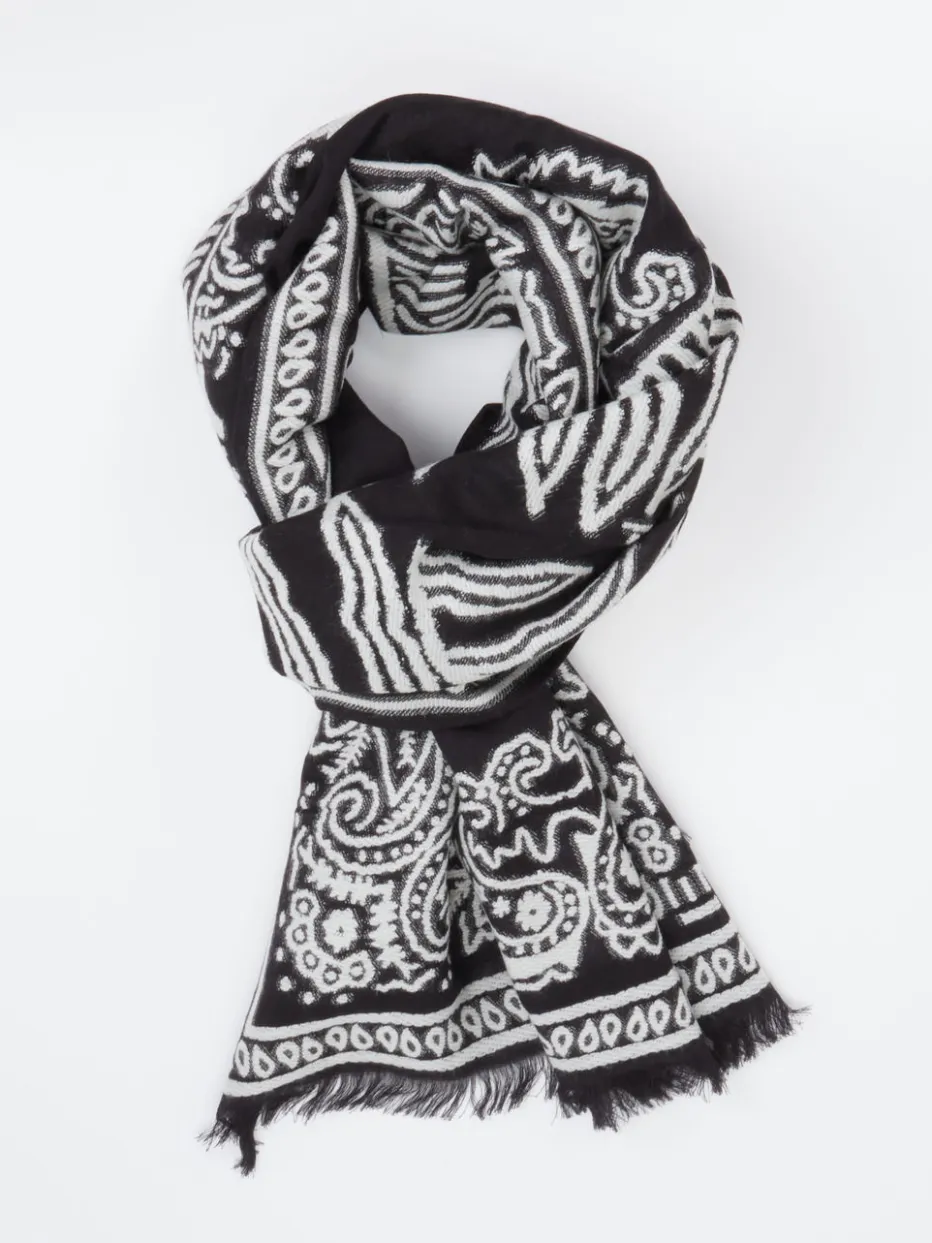 Kontraststarkes Paisleymuster trifft auf weiches Gewebe: Dieser Webschal vereint expressives Design mit hohem Tragekomfort und Unisex-Appeal.