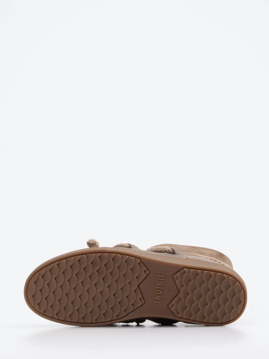 Stilvoll durch frostige Tage.Die Marke Inuikii präsentiert mit dieser Damen-Stiefelette einen modischen Begleiter für die kalte Jahreszeit. Für winterliche Cityspaziergänge oder entspannte Outdoor-Momente bieten diese knöchelhohen Winter-Boots aus Velour- und Glattleder mit samtig-matter Oberfläche zuverlässigen Komfort. Die warme mittelbraune Farbgebung und die markante Schnürung unterstreichen den Gorpcore-inspirierten Look, während das Innenfutter aus echtem Lammfell wohltuende Wärme spendet. Die profilierte Gummisohle sorgt für Rutschfestigkeit bei winterlichen Bedingungen. Dezente Ton-in-Ton-Nähte und ein geprägtes Logo an der Ferse runden das Design ab. Stylisch zu Steppmantel und Strickmütze kombinierbar. Authentische Funktionalität trifft auf nordisch-minimalistisches Designverständnis.