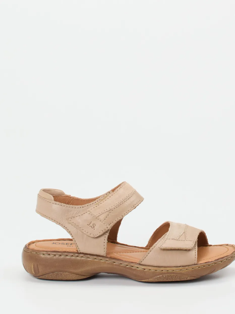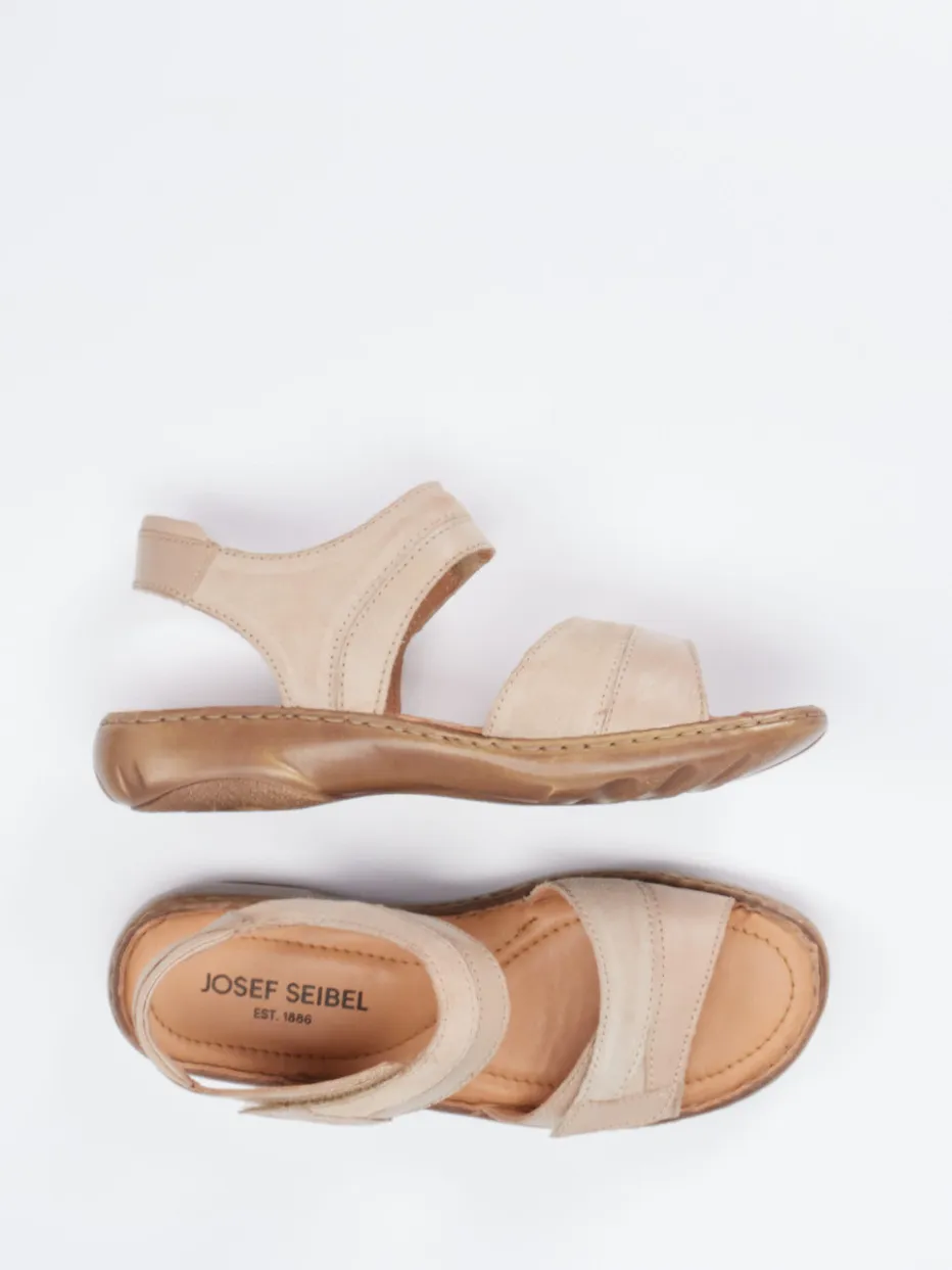 Unaufgeregter Stil trifft Komfortkompetenz.Josef Seibel präsentiert mit dieser Komfortsandale ein Damenmodell für entspannte Sommertage. Ideal für Freizeit und Alltag, überzeugt die offen gestaltete Sandale durch anschmiegsames Velour- und Glattleder in sanften Beigetönen. Die doppelt gearbeiteten Klettverschlüsse erlauben eine individuelle Anpassung, während die weich gepolsterte Ziegenleder-Innensohle auf einer flexiblen Gummisohle mit ergonomischer Form ruht. Die dezente Logo-Prägung und matt gehaltene Oberfläche greifen den Minimalismus-Trend auf und machen das Design besonders vielseitig. Stylingtipp: Passt hervorragend zu Leinenhose und Bluse. Kompromisslos bequem mit klarer Formsprache – Josef Seibel steht für durchdachte Alltagstauglichkeit.