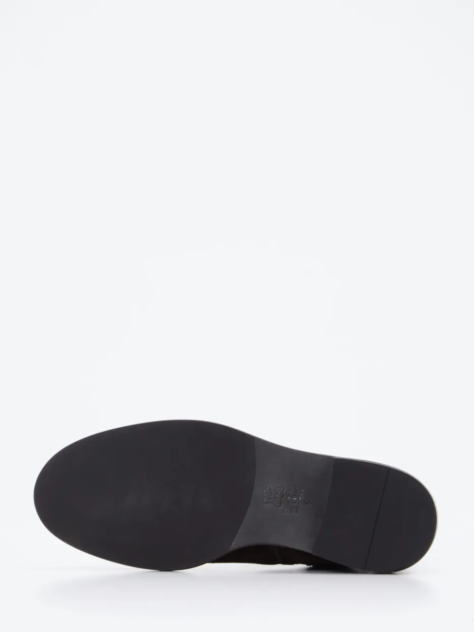 Feines Veloursleder trifft auf minimalistisches Design – diese Biker-Stiefelette vereint Understatement mit Alltagstauglichkeit.