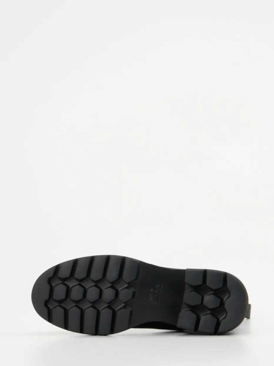 Glamour trifft Urbanität.Kennel & Schmenger präsentiert stilvolle Chelsea Boots für Damen. Ideal für entspannte Citytage oder ein stylisches Ausgehen am Abend: Diese Chelsea Boots aus schwarzem, glänzendem Kalbleder vereinen eine klassische hochschaftige Form mit modernen Streetwear-Akzenten. Seitliche, tonige Elastikeinsätze und Zuglaschen erleichtern den Einstieg, während die markante Leichtzellsohle mit Plateau für Komfort und ein trendiges Erscheinungsbild sorgt. Ein funkelnder Glitterbesatz an der Ferse setzt ein subtiles Glamour-Statement, das sich perfekt in minimalistische Looks einfügt. Lässig kombinierbar mit Oversized-Strick oder Lederaccessoires. Trendorientierter Schuhkomfort in handwerklicher Markenqualität.