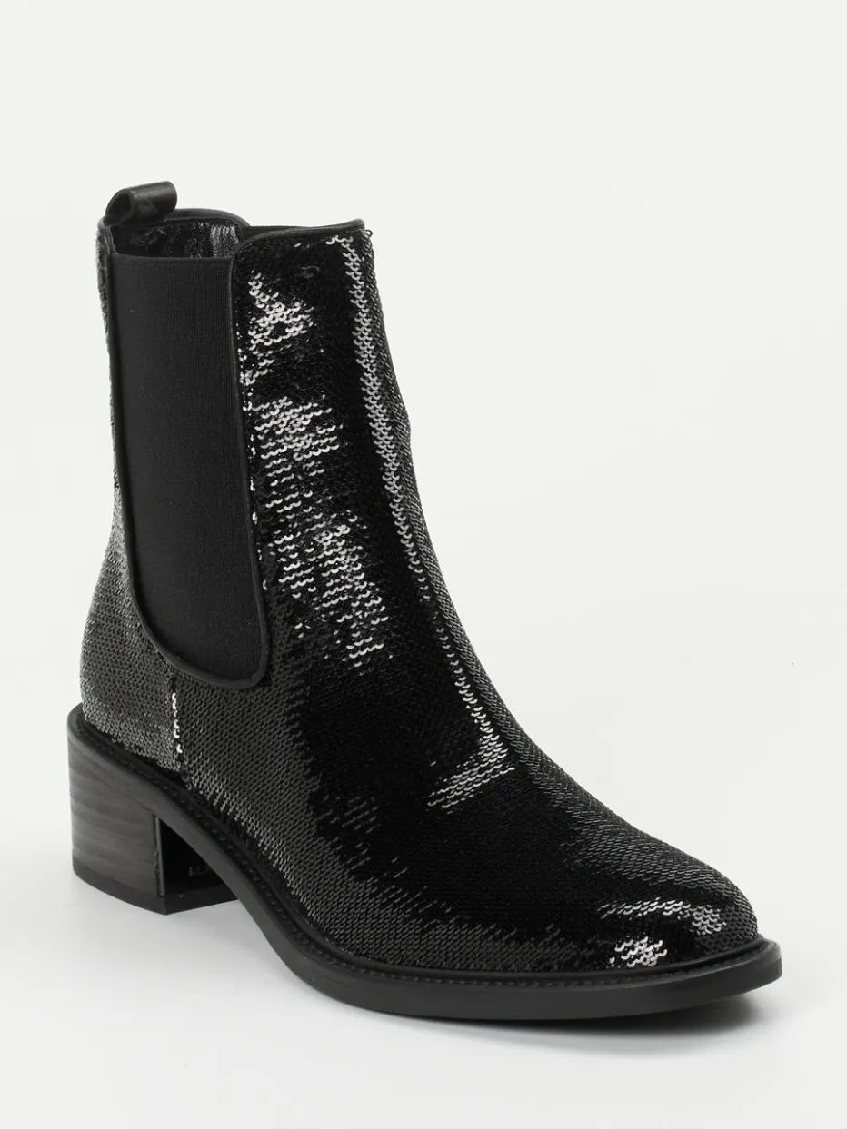 Mit ihrem glitzernden Paillettenbesatz setzen diese Chelsea Boots ein stilvolles Statement. Das Zusammenspiel aus schimmernder Oberfläche und klassischer Silhouette vereint Glamour mit urbaner Lässigkeit.
