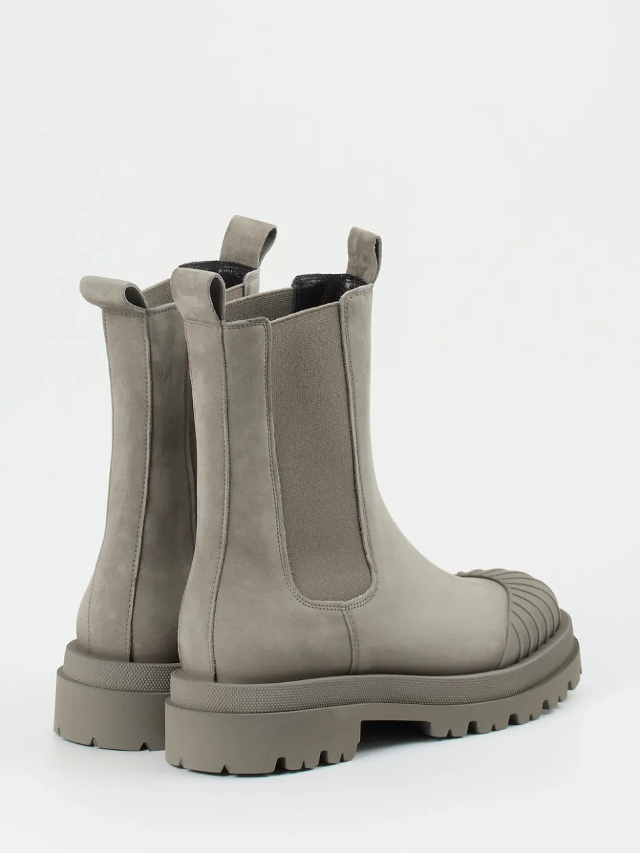Utility trifft Stilbewusstsein.Kennel & Schmenger interpretiert mit diesen Chelsea Boots klassische Minimalistik neu. Für wechselhafte Herbsttage und urbane Wege geschaffen, überzeugt das Modell mit robustem Nubukleder, samtig angeschliffen, in einem eleganten Taupe-Ton. Die strukturierte Gummikappe, tonige Elastikeinsätze und das markante Sohlenprofil setzen charakteristische Akzente. Die knöchelhohe Silhouette mit zwei Zuglaschen erleichtert den Einstieg, während das Innenfutter aus Ziegenleder für hohen Tragekomfort sorgt. Inspiriert vom Streetwear-Stil und Chunky-Trend sind sie ideal für entspannte Outdoor-Styles. Prima kombinierbar mit Steppjacken oder Strick. Komfort und Designexpertise – typisch Kennel & Schmenger.