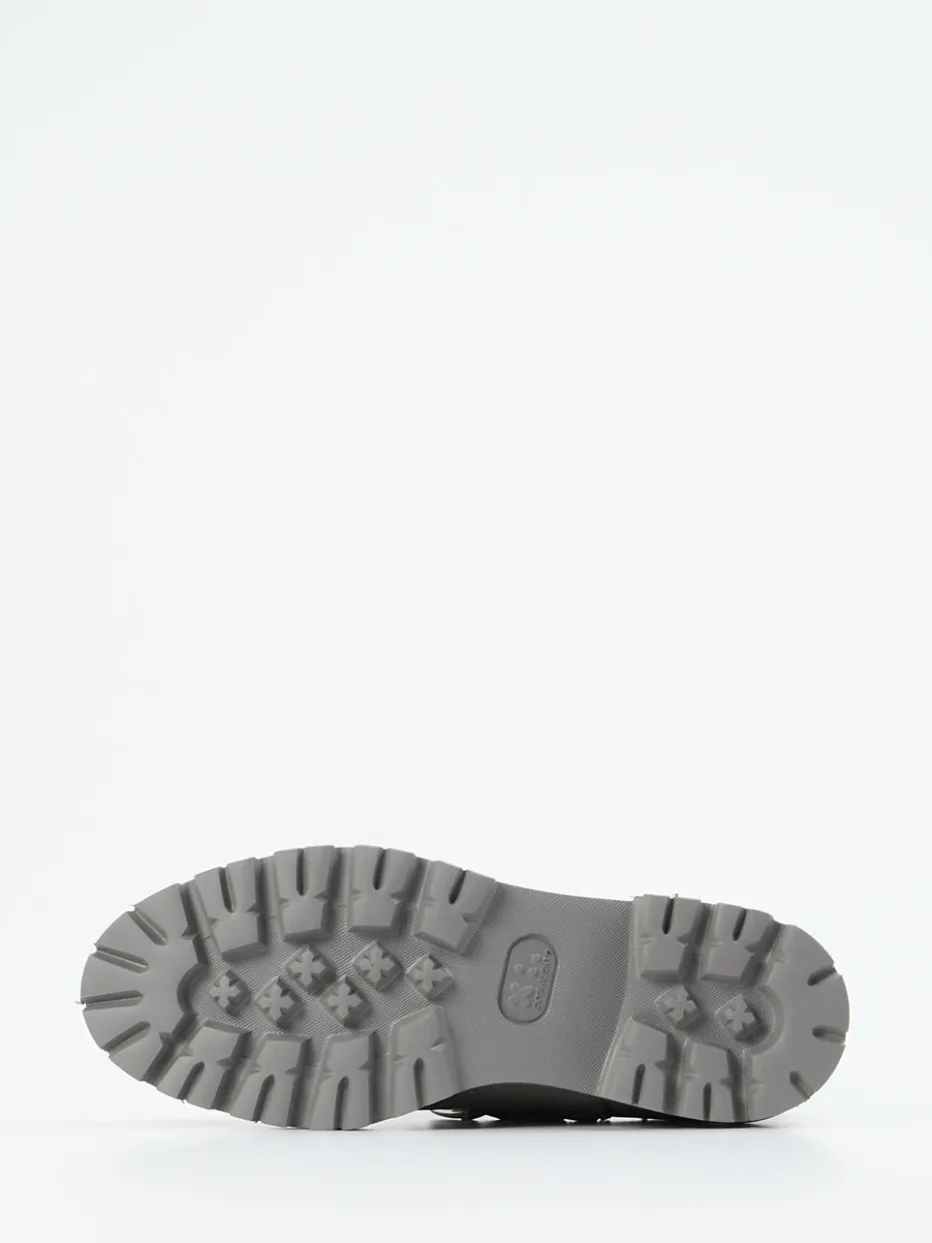 Das samtig angeschliffene Nubukleder in Grauton trifft auf eine profilierte Chunky-Sohle und platinfarbene Kettendetails – ein markanter Chelsea Boot mit trendstarkem Charakter.