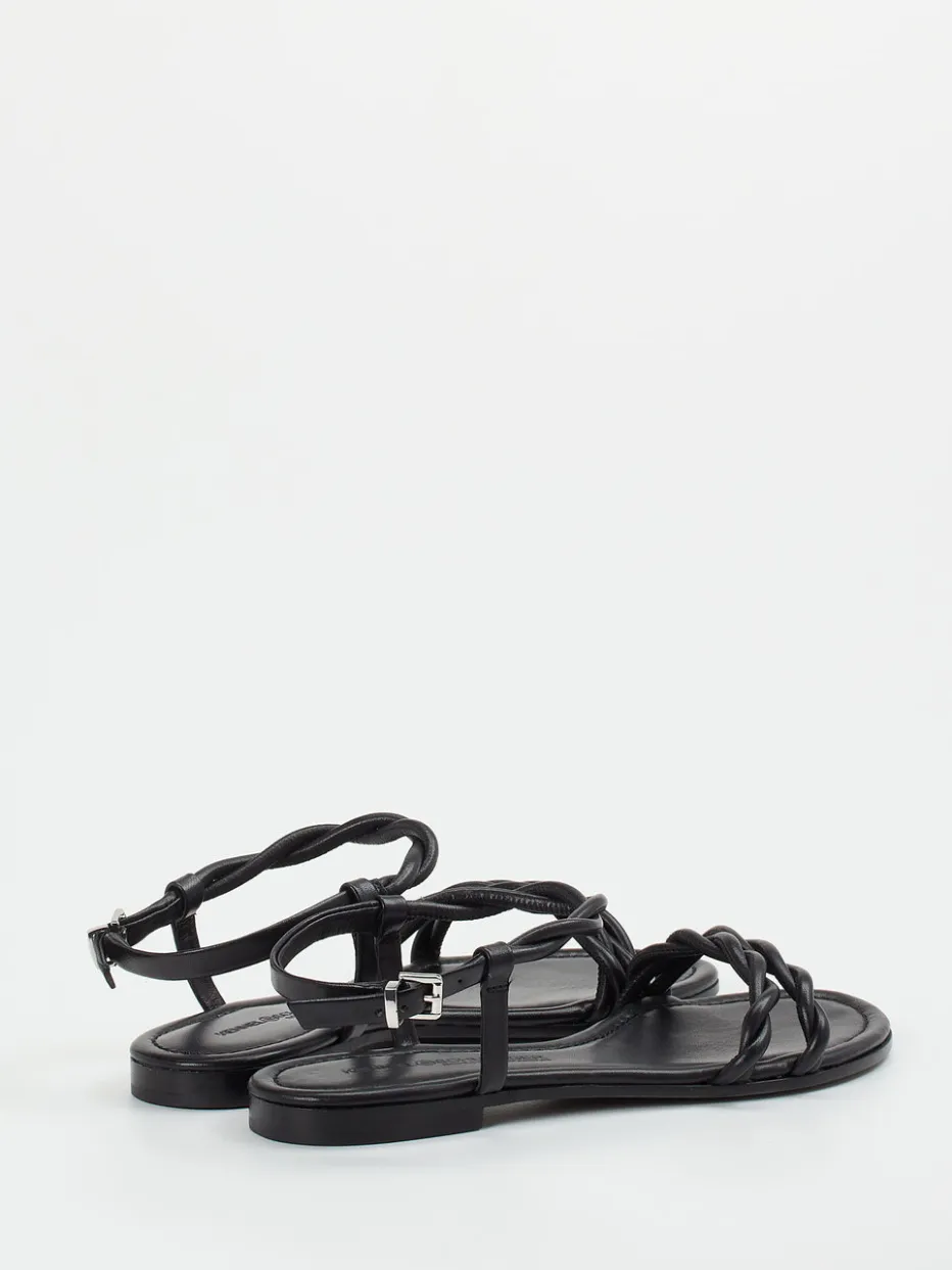 Die geflochtene Riemchensandale aus schwarzem Lammleder verbindet zeitlose Eleganz mit mediterran-minimalistischem Design. Hochwertige Materialien und dezente Details sorgen für stilvollen Komfort.