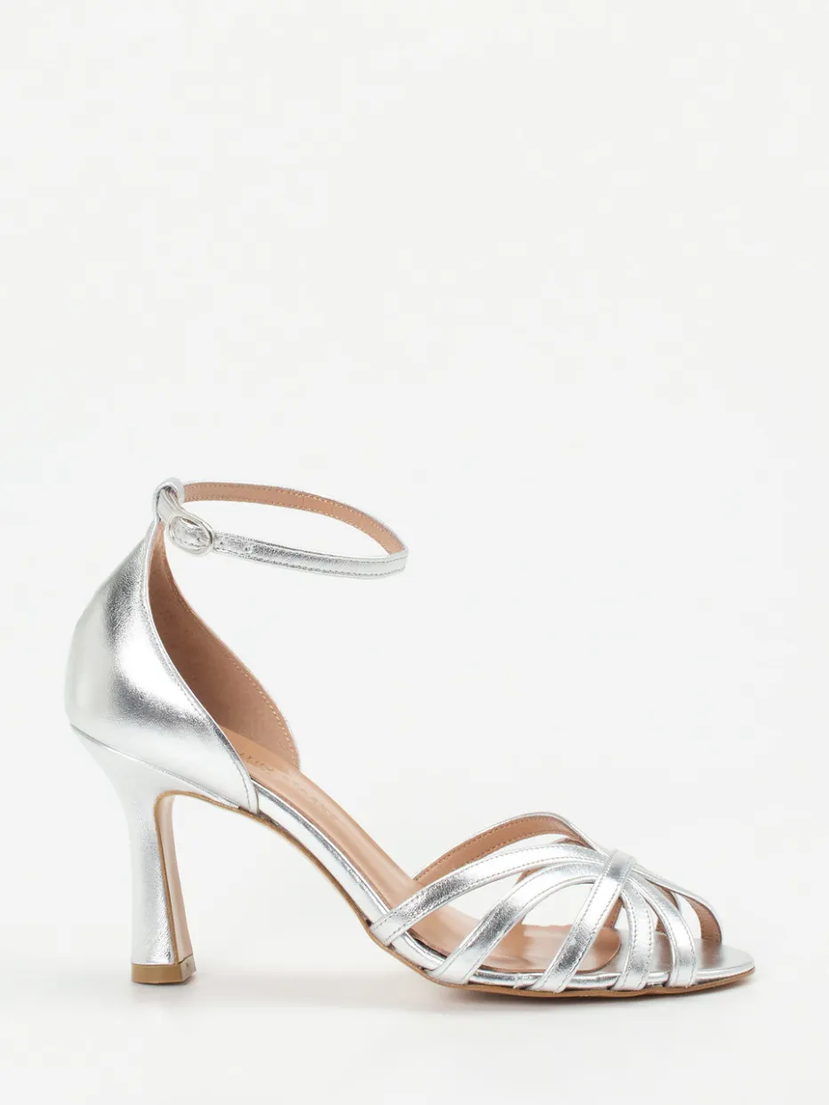 Diese silberfarbene Abendsandale überzeugt durch ihre filigrane Riemenführung und glänzende Oberfläche – ein dezenter Blickfang für stilbewusste Auftritte.
